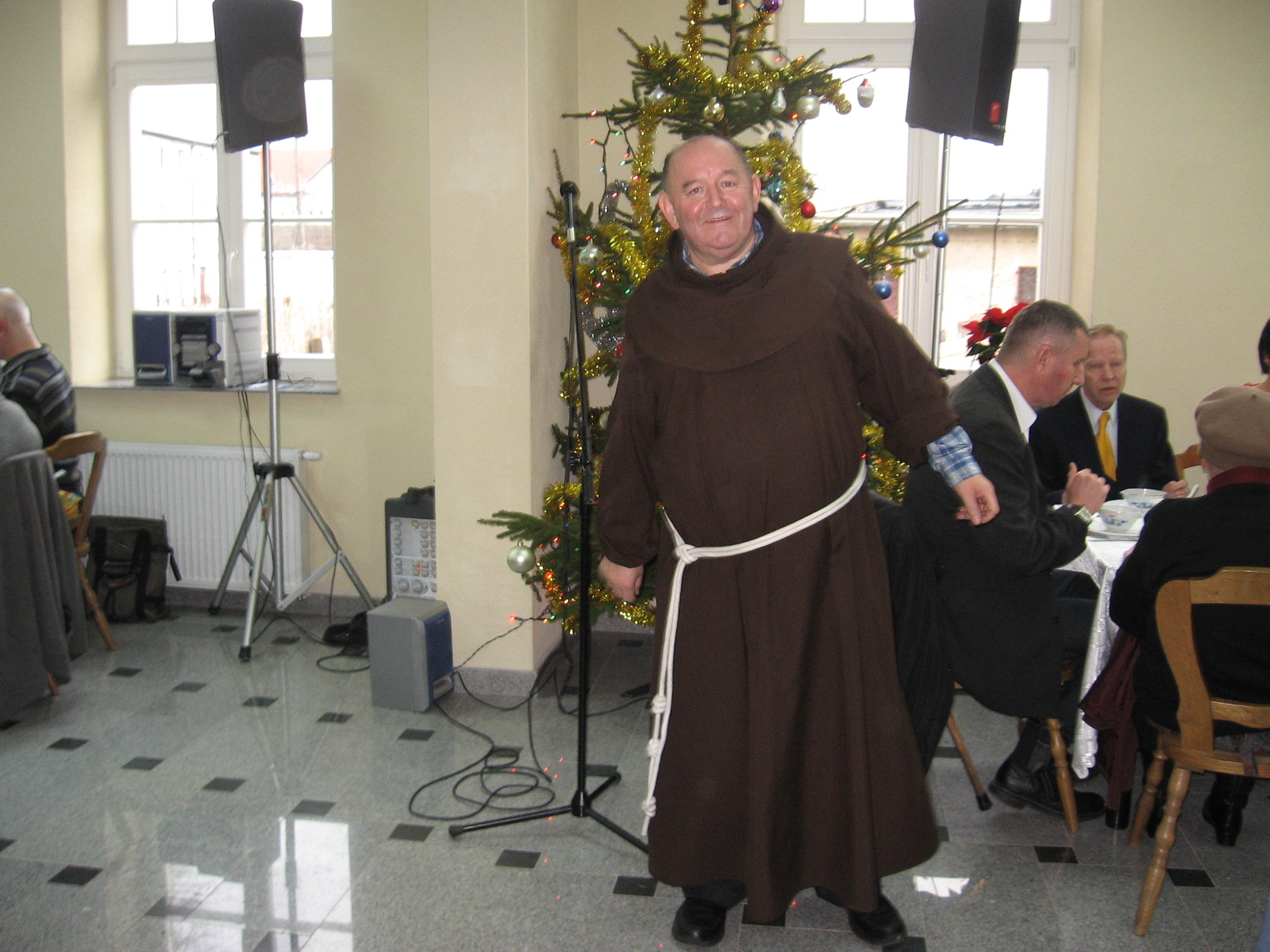 Dnia 23 grudnia 2011r, w Domu Pielgrzyma u o. o Franciszkanów, odbyła się Wieczerza Wigilijna dla ok. 120 bezdomnych i ubogich. Było to wspólne dzieło naszego Parafialnego Zespołu Caritas, o.o Franciszkanów, władz miasta Wejherowa i MOPS-u w Wejherowie.Nad przygotowaniami pieczę trzymał o. Ewaryst. Wszystko odbywało się pod Jego dyktando i smak. Przy wspólnym stole z bezdomnymi zasiedli włodarze miasta: K. Hildebrandt i B. Tokłowicz, Dyrektor MOPS, Prezes Caritas – Halina Potrykus i Proboszcz parafii św. Anny o. Tyberiusz, który odczytał słowa Ewangelii. Następnie Prezydent miasta Wejherowa złożył wszystkim życzenia i podzielono się opłatkiem.Panował nastrój pełen serdeczności i wzruszenia. Zaśpiewano kolędy i przyszedł czas na wspólny posiłek przy suto zastawionych stołach. Dzieci ze szkoły podstawowej przygotowały jasełka a pięknie ubrana choinka dodawała blasku rodzinnej atmosferze.