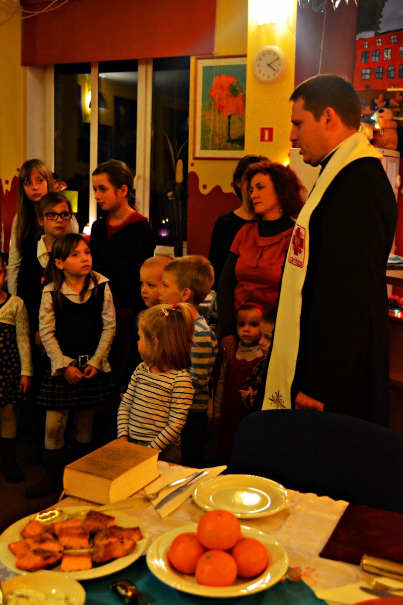 W tym roku podopieczni wszystkich grup z Centrum Frassati wspólnie świętowali Boże Narodzenie. Dzieci i młodzież z wychowawcami oraz ks. Piotrem, w uroczystej atmosferze, rozpoczęła wigilijne spotkanie śpiewem kolęd i modlitwą według zwyczaju. Wszyscy składali sobie świąteczne życzenia i łamali się opłatkiem na znak przyjaźni, życzliwości i pojednania. W końcu uczestnicy zasiedli do pięknie zastawionego stołu, na którym znalazły się przeróżne tradycyjne potrawy, owoce i słodkości, a to za sprawą m.in. naszych przyjaciół i sponsorów z Hotelu Radisson – serdecznie dziękujemy! Na zakończenie każdy dostał też świąteczny upominek 🙂