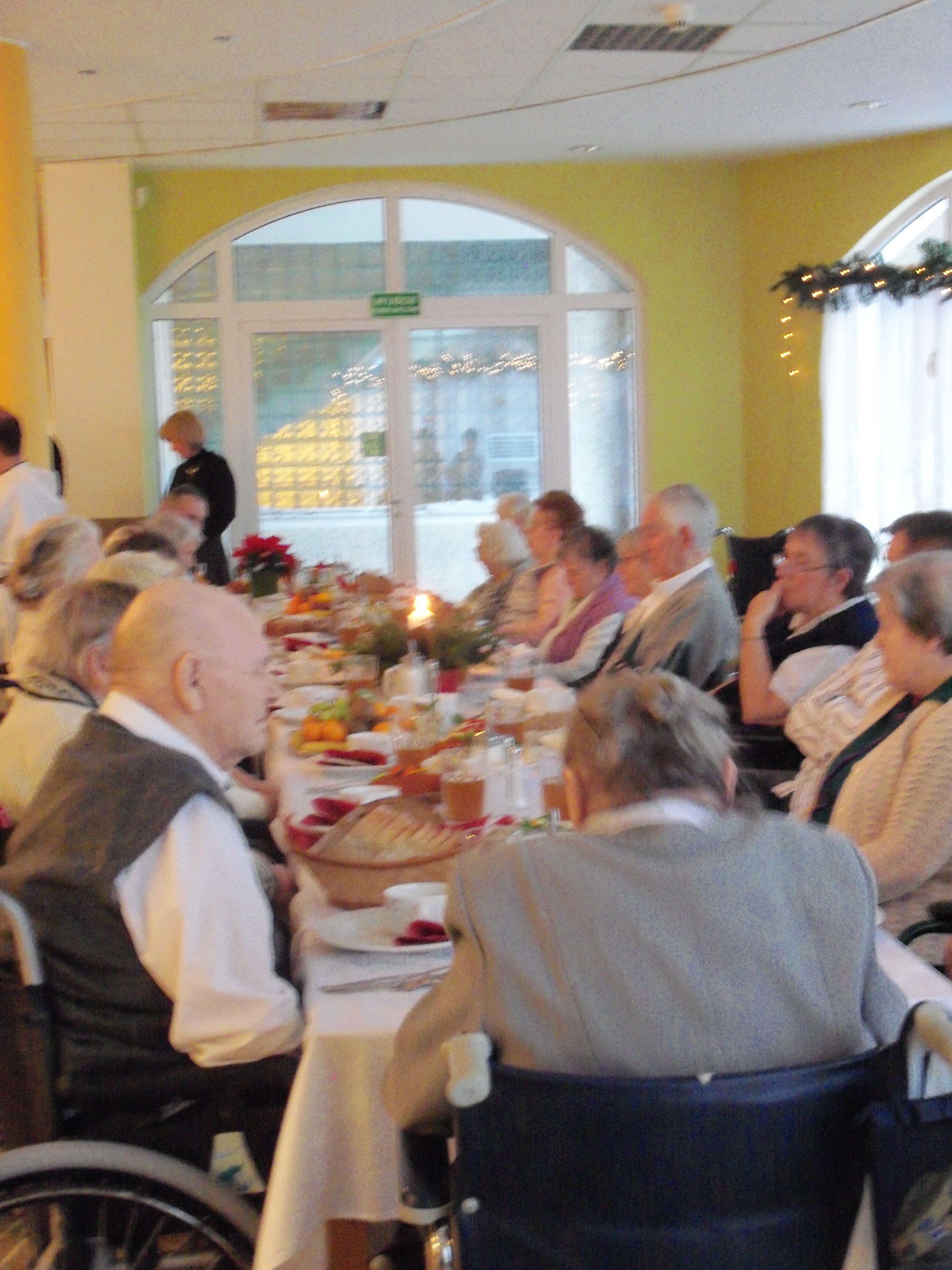 Na początek odśpiewaliśmy wspólnie kolędę „Wśród nocnej ciszy”. Po serdecznym powitaniu i ciepłych życzeniach od Biskupa Ryszarda Kasyny i Dyrektora Janusza Stecia, mieszkaniec naszego domu Pan Jan odczytał Ewangelię wg Św. Łukasza o narodzeniu naszego Pana Jezusa Chrystusa.