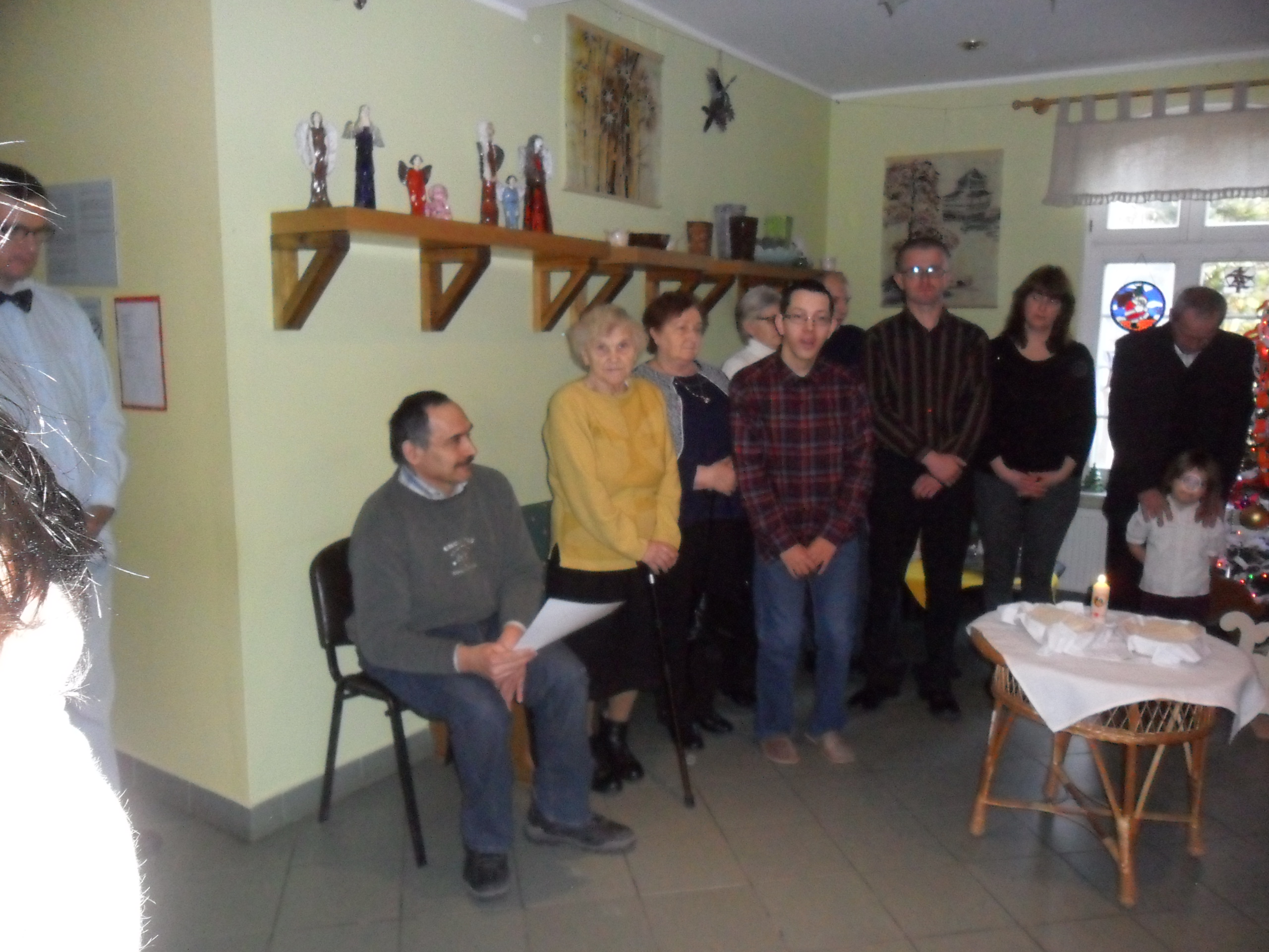 Księża pobłogosławili opłatek, którym wszyscy zgromadzeni składali sobie świąteczne życzenia.  Po życzeniach każdy miał możliwość spożyć potrawy wigilijne przygotowane przez uczestników pracowni kuchni dydaktycznej pod kierunkiem Pani Magdy.