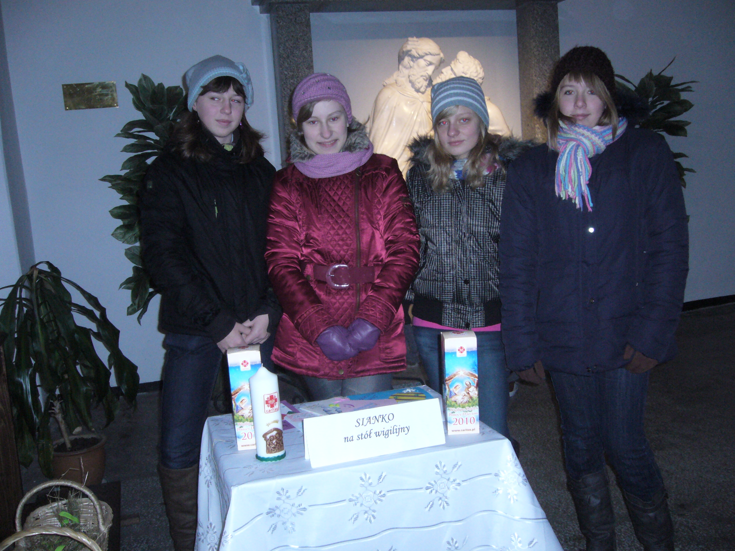 Natomiast w ostatnią niedzielę adwentu przeprowadziliśmy tradycyjną już w parafii akcję “Wigilijne sianko”. Sprzedawaliśmy przed kościołem małe paczuszki pachnącego siana z  życzeniami świątecznymi i logo naszego koła. Tą akcją chcieliśmy pomóc Tomkowi Majewskiemu z Gdańska  i odpowiedzieć na prośbę SKC z Gimnazjum nr 26. Dzięki życzliwości i hojności mieszkańców Chwarzna udało się zebrać prawie 600 złotych!  Pieniądze przekazaliśmy na zakup specjalistycznego wózka dla Tomka.