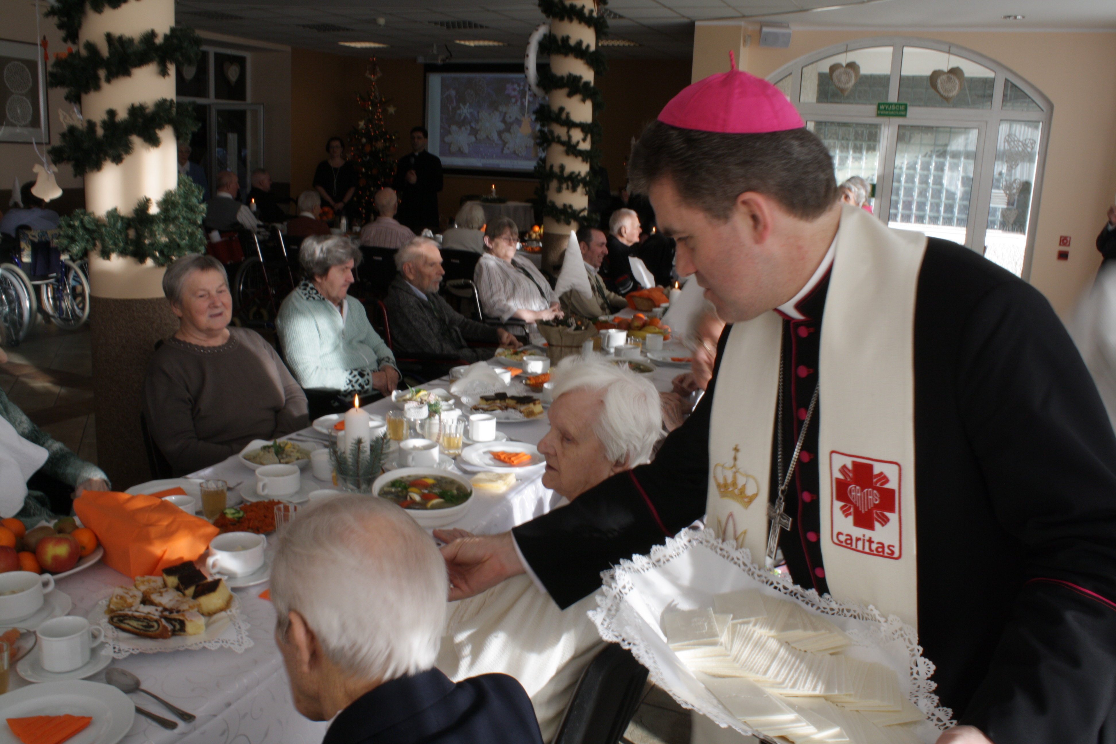 Święta to wyjątkowy czas, kiedy swoją radością powinniśmy się dzielić z innymi, dlatego przy wigilijnym stole gościliśmy ks Biskupa Zbigniewa Zielińskiego, Dyrektora Caritas Archidiecezji Gdańskiej ks. Janusza Stecia, oraz ks. Jerzego Kownackiego, ks. Januarego Kownackiego, ks. Tadeusza Polaka oraz dyrektor Centrum Pomocowego Caritas im. Jana Pawła II- Annę Kostusik. Wigilia rozpoczęła się występem Mieszkanek Pani Marii Poćwiardowskiej, Elżbiety Hoppe, Jadwigi Matczak. Panie przypomniały nam o tradycjach wigilijnych w krótkim przedstawieniu pt. ”Wigilia Polska”. Po skończonej wieczerzy mieszkańcy i wolontariusze otrzymali prezenty. Zapachniało świętami i Wszystkim udzieliła się świąteczna atmosfera. Myślę, iż dla wielu z nas był to wyjątkowy czas, pełen pozytywnych wrażeń i własnych refleksji.