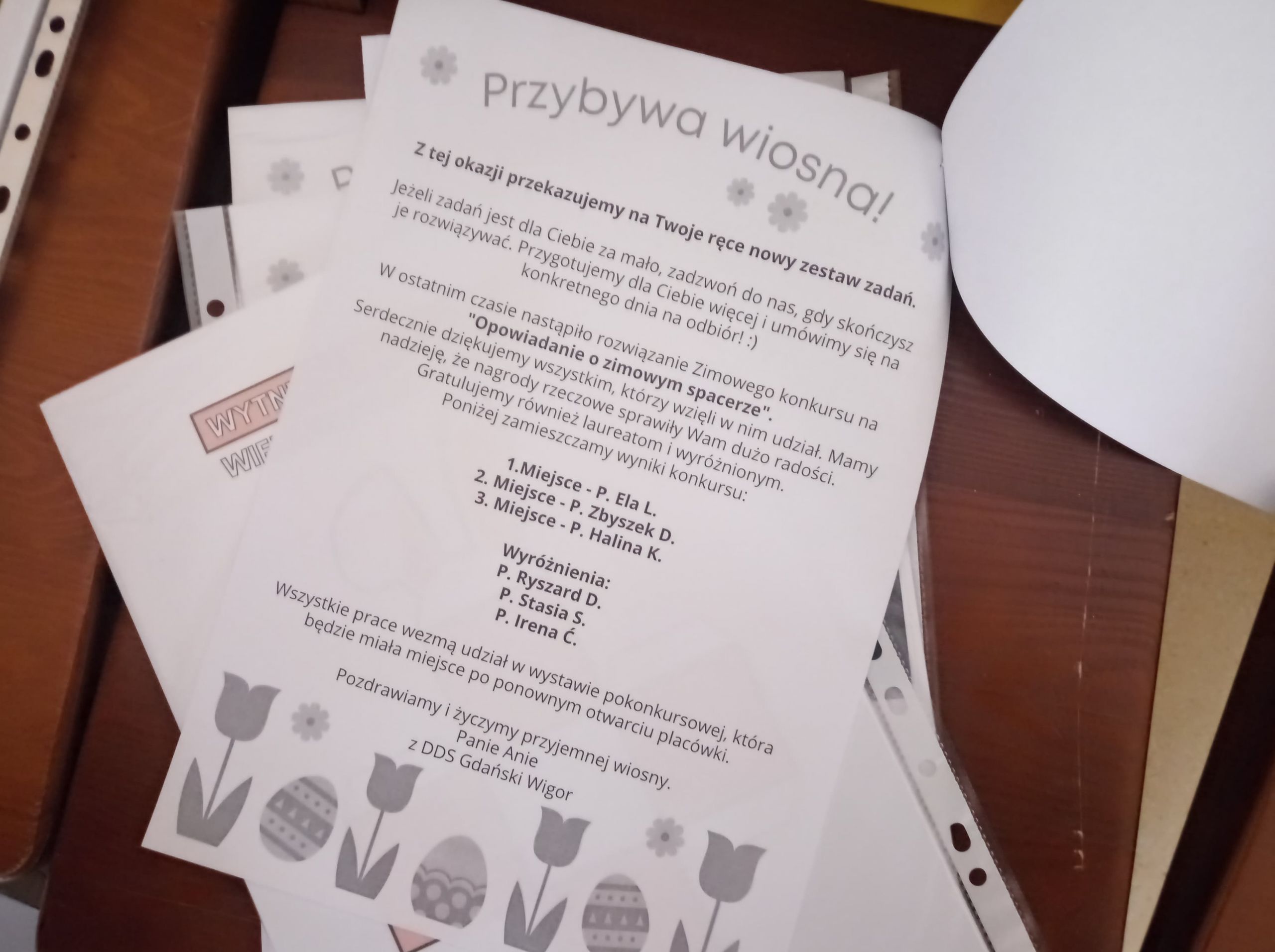 Nowe zestawy zadań ruszyły do Seniorów. A w nich szablony do wykonania świątecznych pudełek na czekoladki, łamigłówki, dyktanda i różnego rodzaju zadania mające na celu ćwiczenie koncentracji, pamięci, precyzji i umiejętności motorycznych.