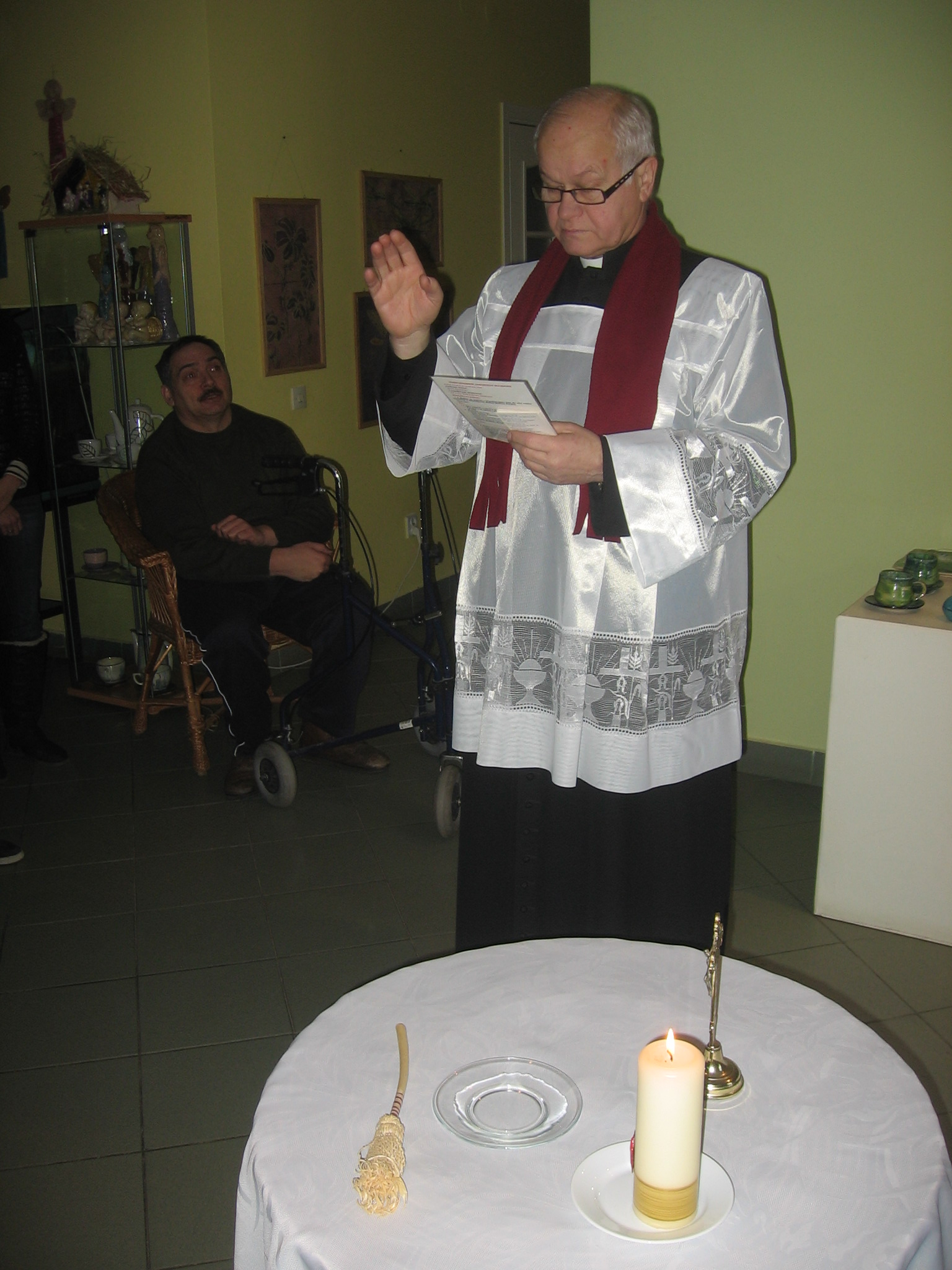 Z wizytą duszpasterską zawitał do nas Ks. Dziekan Józef Nowak. Ks. Nowak pobłogosławił naszą warsztatową rodzinę i poświęcił wszystkie pracownie, w których pracują podopieczni warsztatu. Wszyscy otrzymali pamiątkowe obrazki. Po wspólnym odśpiewaniu kolęd, był czas na rozmowy przy kawie i cieście.