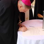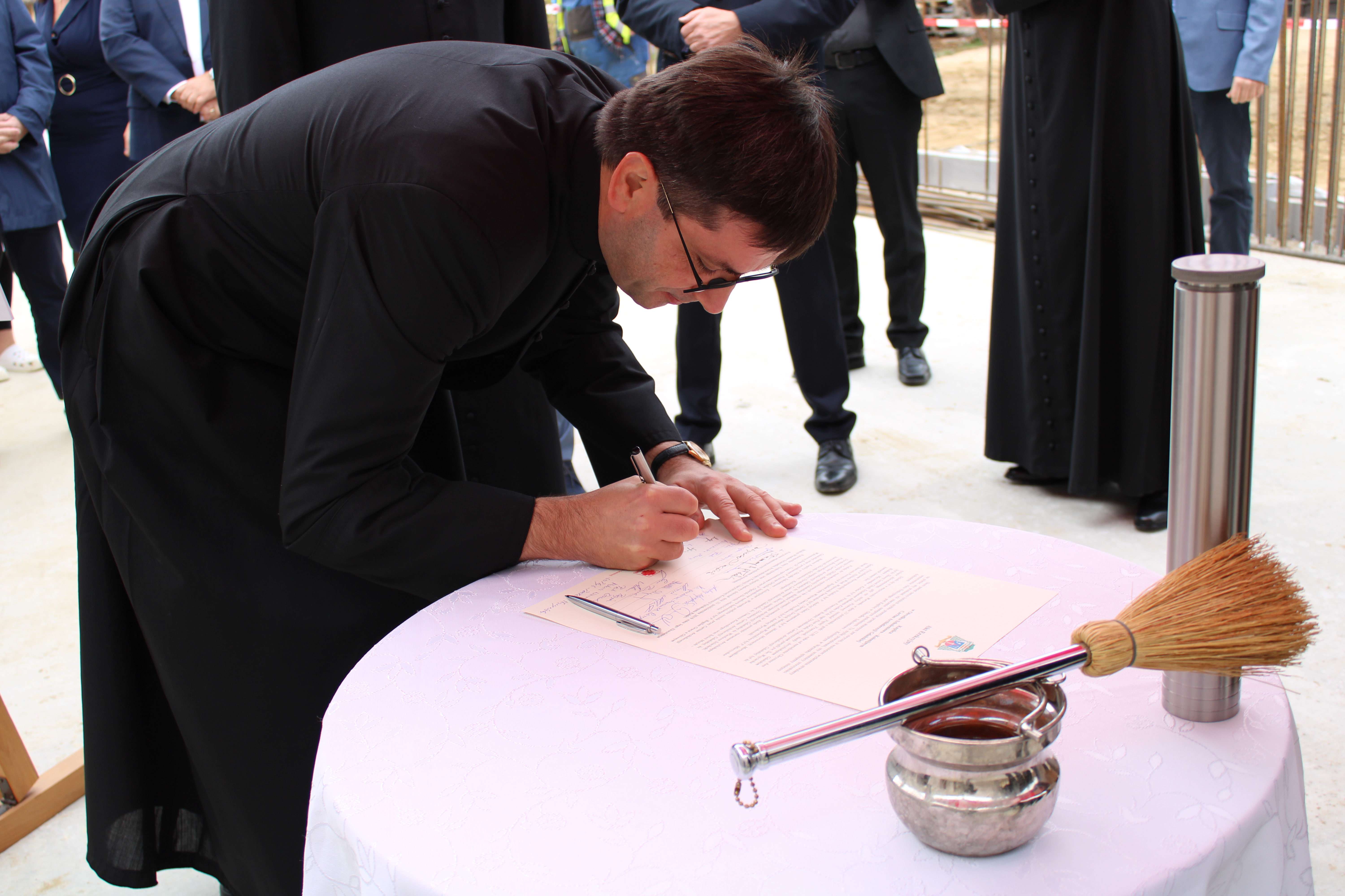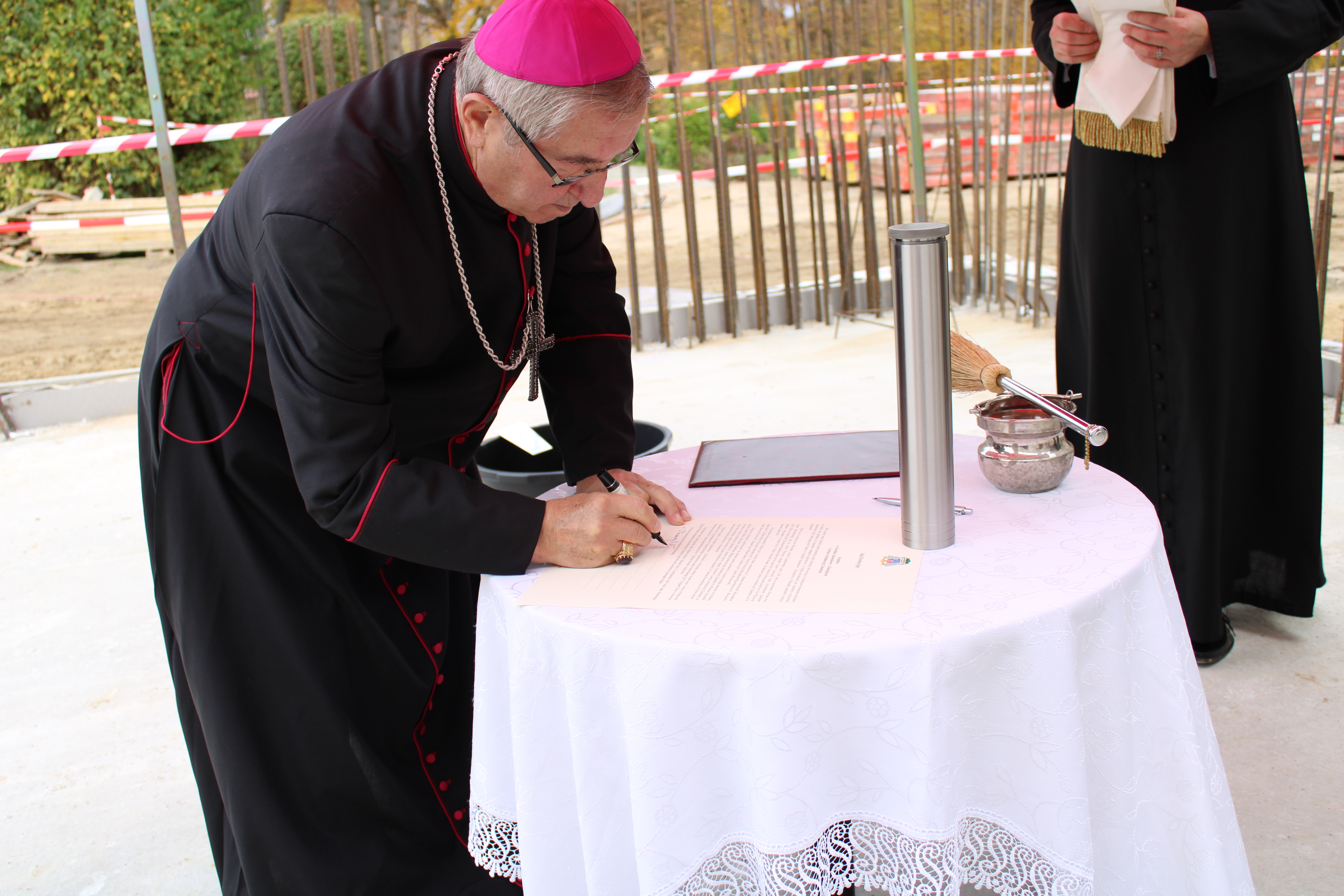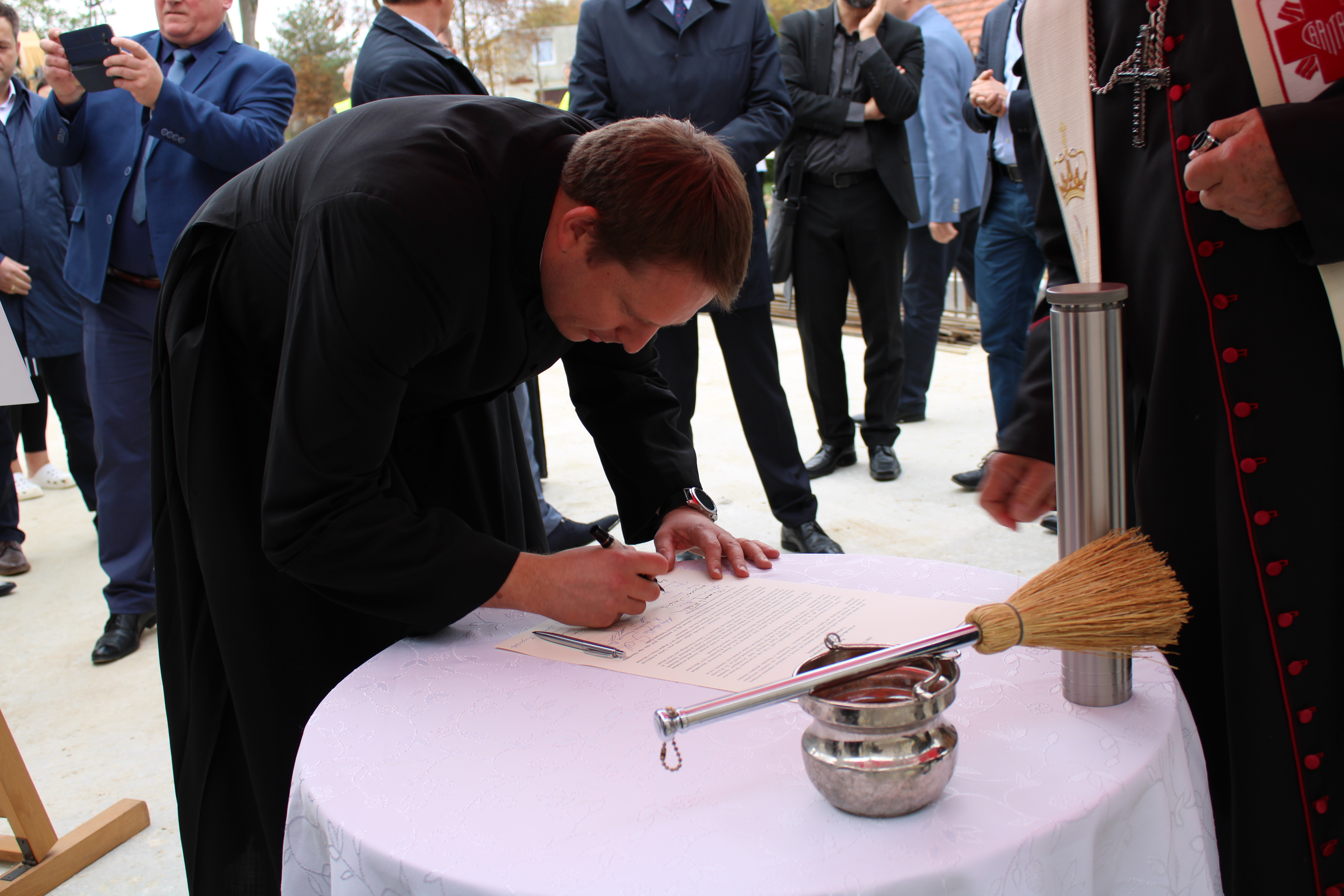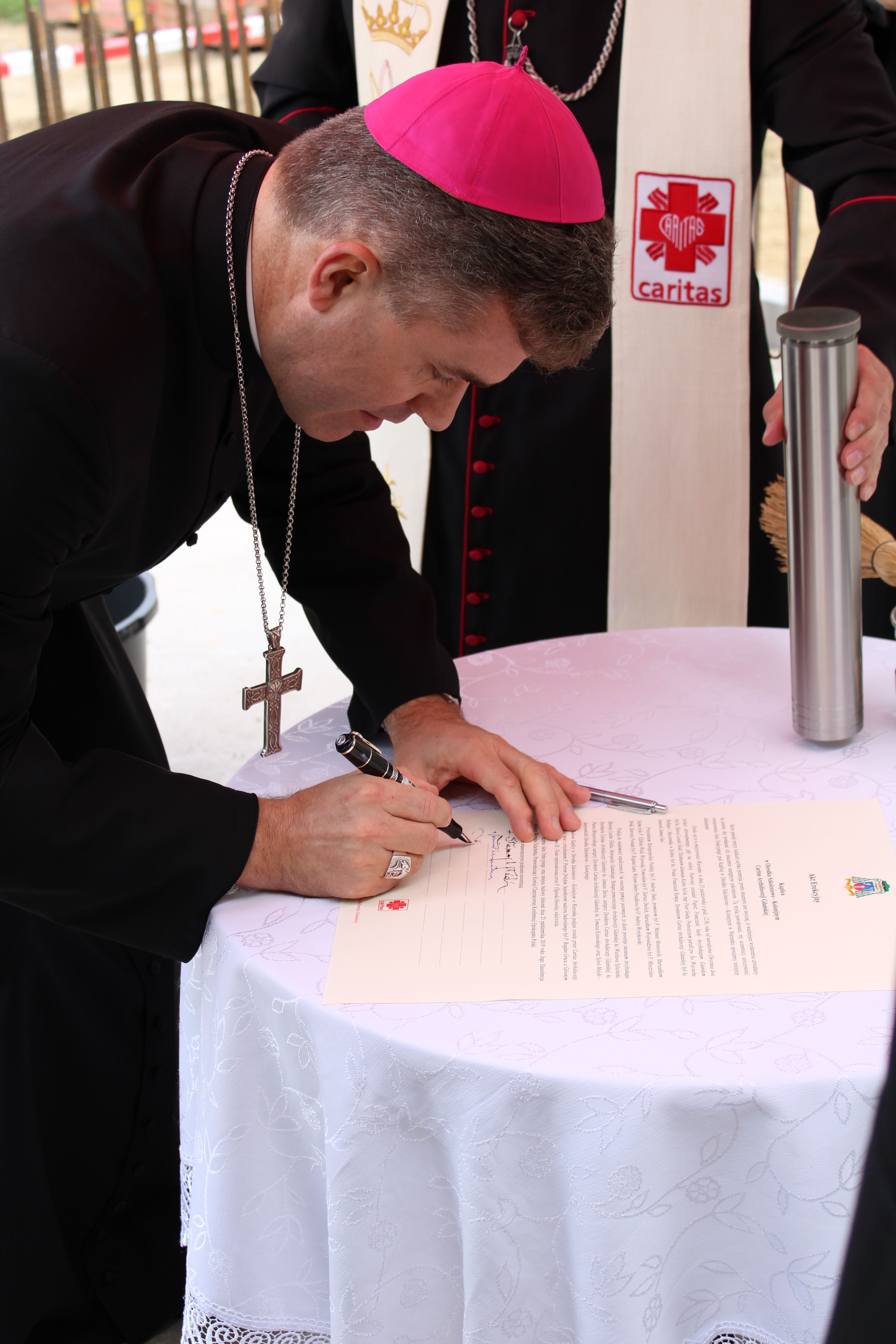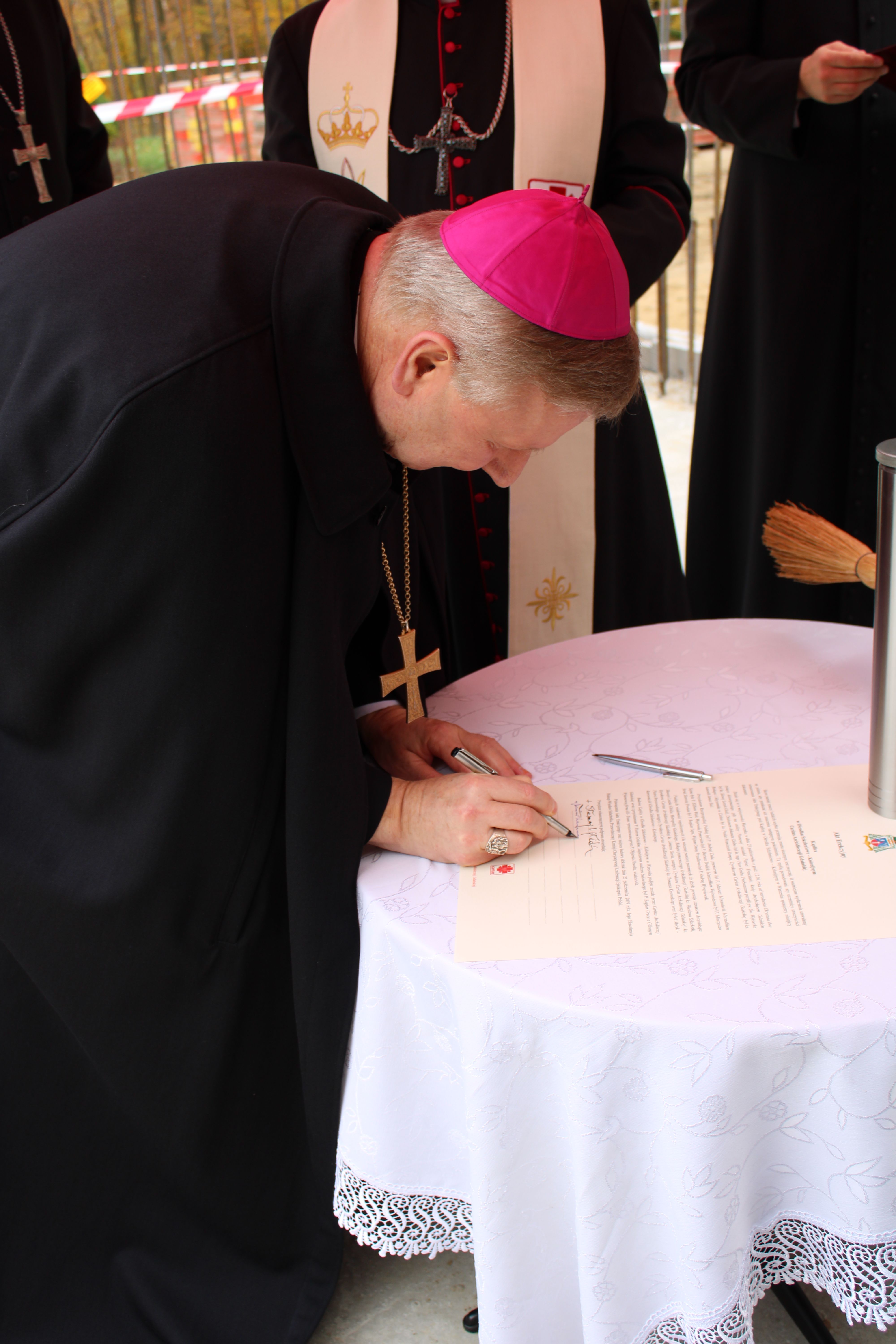 Po podpisaniu a następnie odczytaniu Aktu Erekcyjnego przez Ks. Bp. Wiesława Szlachetkę nastąpiło wmurowanie i zabetonowanie tuby z Aktem Erekcyjnym w miejscu w którym ma znajdować się w przyszłości ołtarz. Do tuby oprócz aktu erekcyjnego włożony został przez Arcybiskupa Metropolitę Gdańskiego Sławoja Leszka Głódzia także różaniec.
