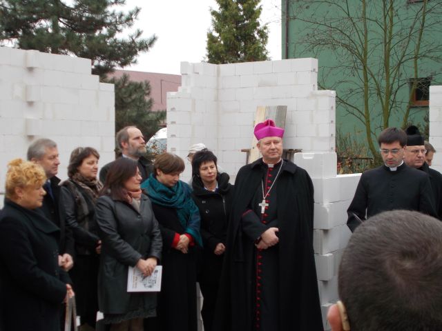 Wczoraj tj 20 listopada 2014 w Krzywym Kole odbyło się uroczyste wmurowanie kamienia węgielnego pod rozbudowę ŚDS. Poświęcenia Aktu Erekcyjnego oraz miejsca budowy dokonał Jego Ekscelencja ks. Biskup Wiesław Szlachetka. W uroczystości wzięło udział wielu znamienitych gości min Bogdan Dombrowski – Podsekretarz stanu w Ministerstwie Administracji i Cyfryzacji, Dyrektor Caritas Archidiecezji Gdańskiej- ks. Janusz Steć, z-ca Dyrektora Caritas ks. Piotr Brzozowsk, Mariusz Jandzio – dyr. Wydz. Polityki Społecznej Urzędu Wojewódzkiego, Ewa Szczypior inspektor z Wydz. Polityki Społecznej Urzędu Wojewódzkiego, Barbara Kamińska – Wójt Gminy Suchy Dąb,, ks. Krzysztof Zdrojewski proboszcz parafii w Koźlinach, ks. Jan Świstowicz – dziekan Dekanatu Żuławy Steblewskie, Kierownik GOPS – u p. Mirosława Dombrowska, , inspektor nadzoru – p. Andrzej Zajączkowski , Główny Wykonawca firmy RODŁO – inż. Grzegorz Piotrowski sołtys Krzywego Koła – p. Małgorzata Cyra, przewodnicząca KGW Krzywe Koło – p. Joanna Zawadzka . Podopieczni i pracownicy Centrum nie ukrywali radości, że mogą uczestniczyć w tak wyjątkowej i historycznej chwili.