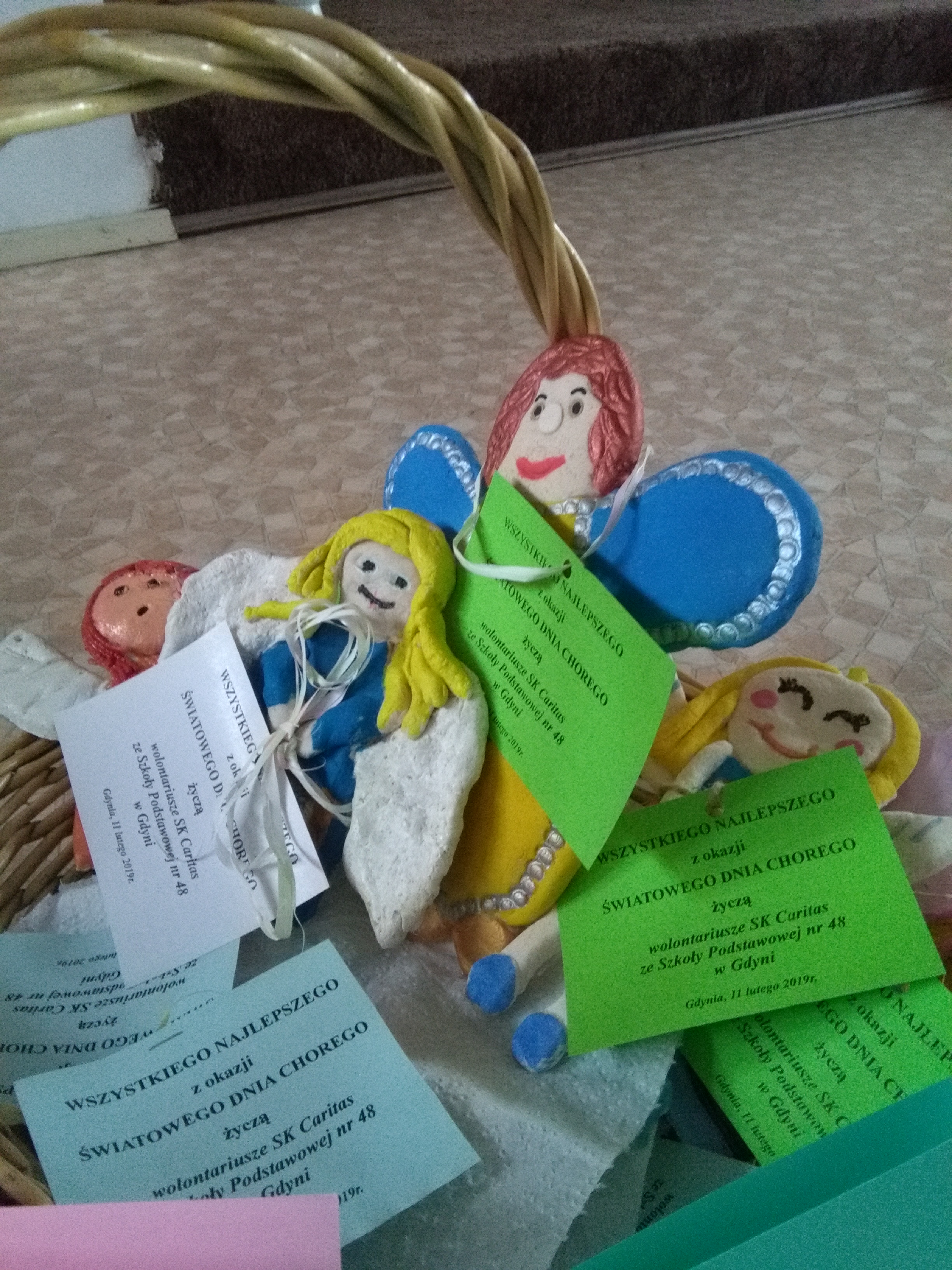 Tradycyjnie już, 11 lutego odwiedziliśmy pacjentów Szpitala Rehabilitacyjnego w Gdyni-Witominie. Wolontariusze – „śmiałkowie” (zwarci i gotowi nawet podczas feryjnego wypoczynku) nie zawiedli! Antek upiekł pyszne babeczki, Ada i Oliwia przygotowały kartki, do tego jeszcze koszyk pełen aniołów, wykonanych przez uczniów naszej szkoły.