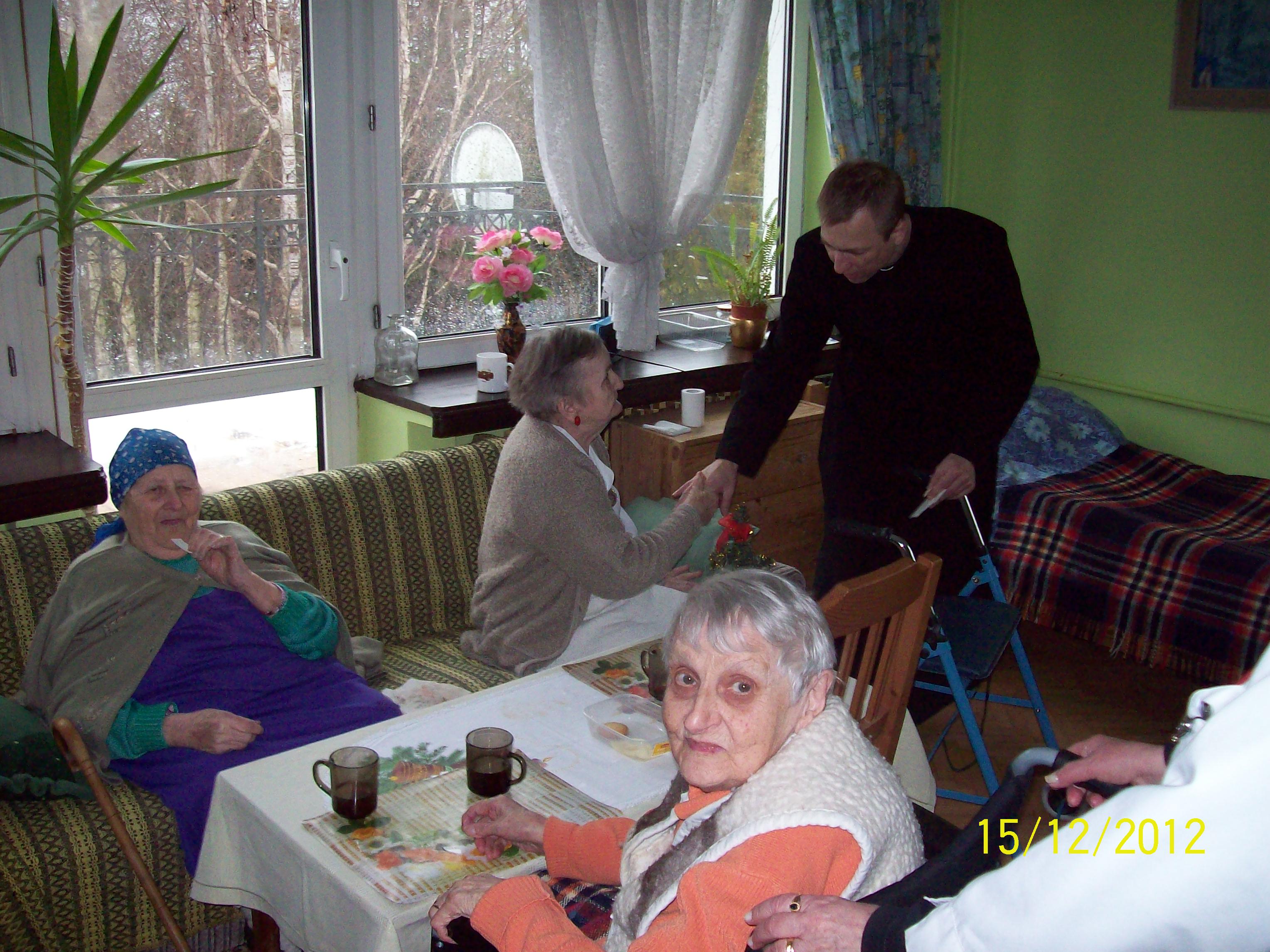 W grudniu w ramach realizacji programu „Razem mamy więcej – czyli międzypokoleniowa aktywność na rzecz osób starszych” członkowie Parafialnego Zespołu Caritas z parafii pw. Podwyższenia Krzyża Św. w Rumi wraz z księdzem proboszczem udali się do Domu Seniora przy ul. Rajskiej, gdzie przebywa 25 pensjonariuszy z całodobową opieką lekarską. Średnia wieku osób tam przebywających to 77 lat. Przygotowane przez członków PZC spotkanie świąteczne sprawiło pensjonariuszom mnóstwo radości. Było wspólne śpiewanie kolęd i łamanie się opłatkiem. Wszyscy pensjonariusze byli zachwyceni i ochoczo uczestniczyli w zorganizowanym spotkaniu śpiewając kolędy – większość z pamięci, choć członkowie PZC przygotowali śpiewniki . Okazało się, że seniorzy świetnie znają teksty kolęd. Niektórzy z pamięci potrafili zaśpiewać po 4 i więcej zwrotek. Na zakończenie członkowie PZC wręczyli każdemu świeczkę „Wigilijnego dzieła pomocy dzieciom” i umówili się wstępnie na kolejne spotkanie w ramach obchodów Dnia Dziadka i Babci.
