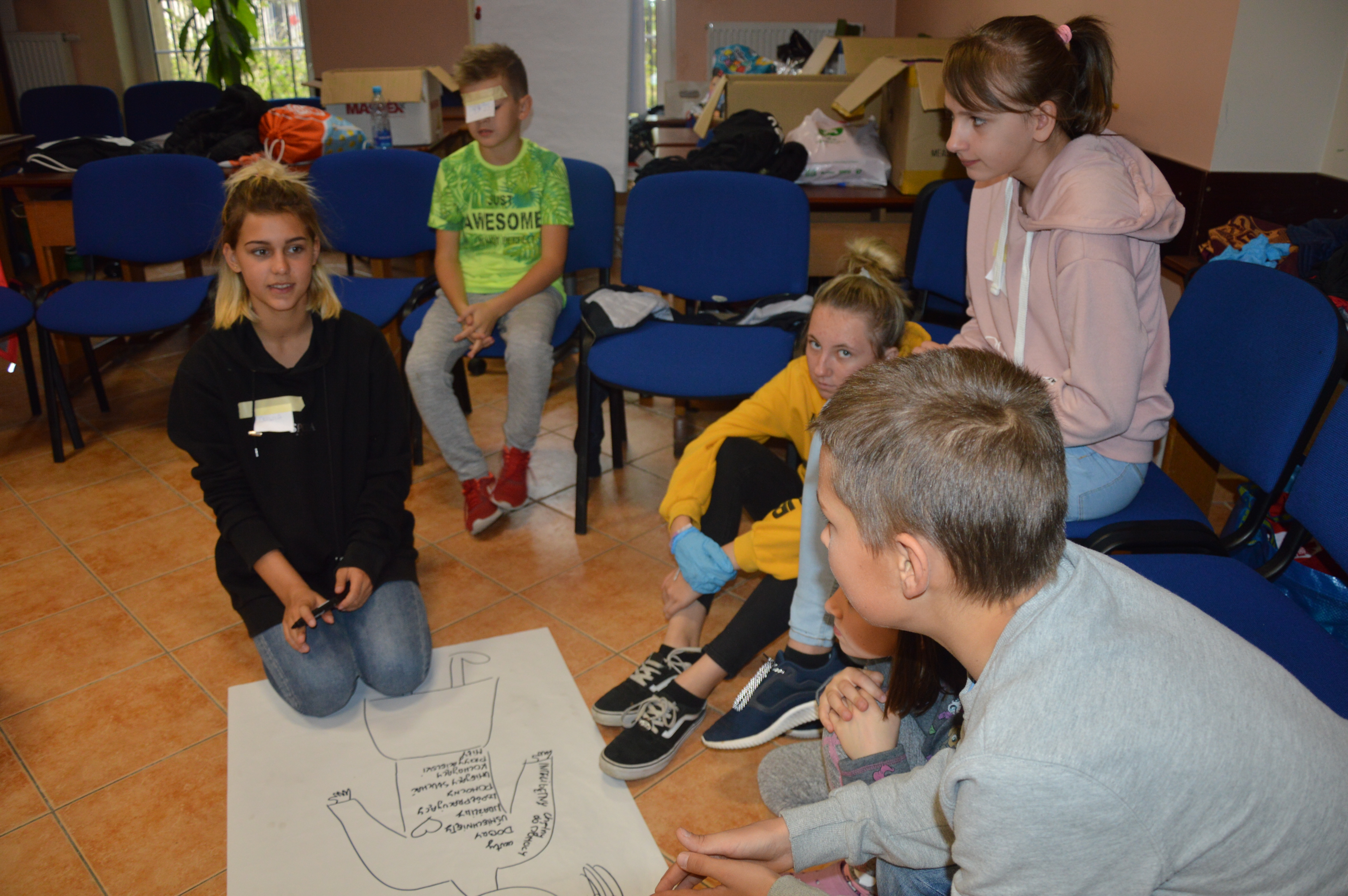 Dzisiaj Centrum Wolontariatu na Jesionowej opanowała grupa uczniów ze Szkoły Podstawowej nr 55 w Gdańsku, kórzy chcą zaangażować się w działania Szkolnego Koła Caritas. W raz z opiekunkami SKC – panią Ewą oraz siostrą Klarą – wiezli udział w szkoleniu I stopnia dla nowych członków SKC
