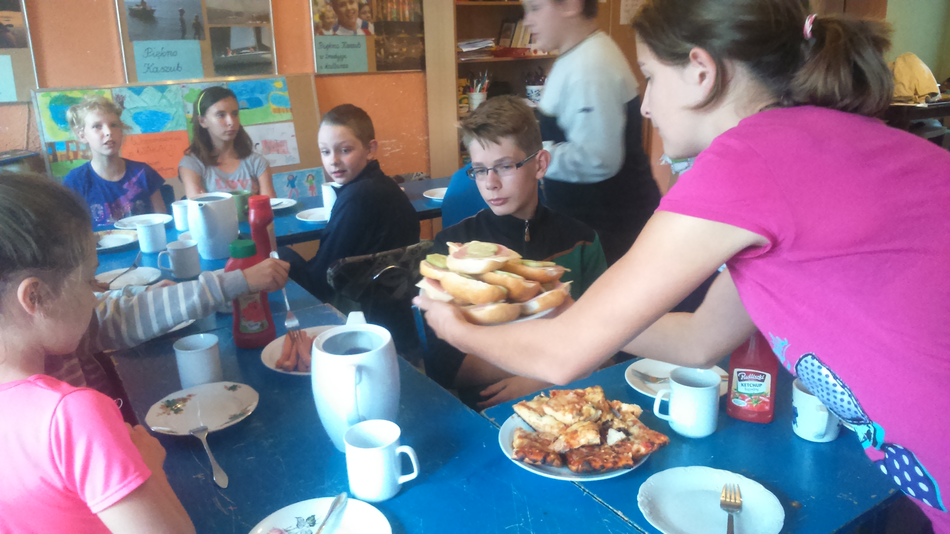 Po takiej intensywnej pracy umysłowej trzeba też wzmocnić ciało. W naszej świetlicy często staramy się wykorzystywać nasz piekarnik i wtedy powstają takie pyszności jak np. pizza! Robiliśmy też pyszne tortille, oczywiście nie mogło zabraknąć zdrowej sałatki.