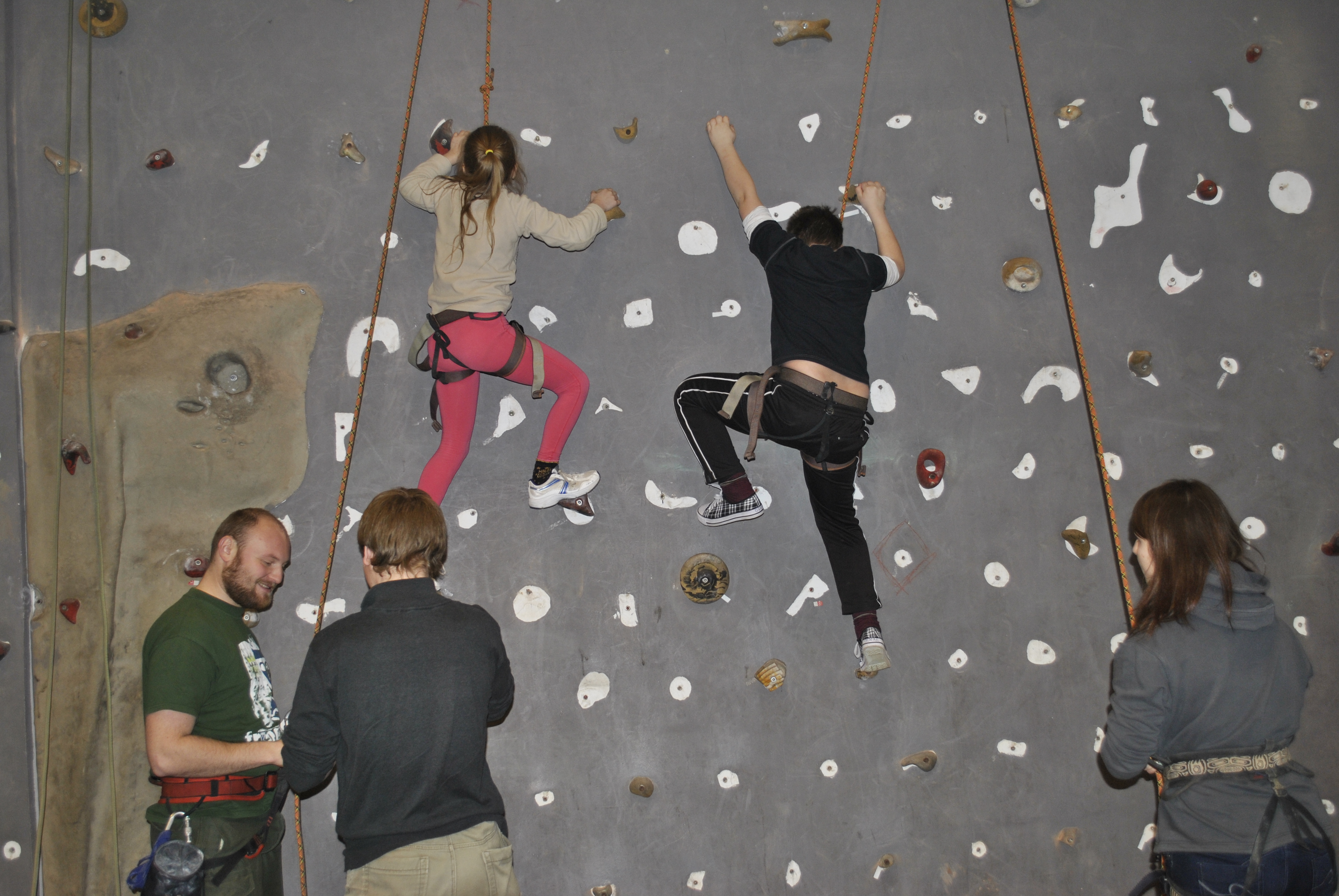 Centrum Frassati korzysta z zajęć alternatywnych przy realizacji projektu „Sporty zimowe dla Ciebie” współfinansowanego przez Ministerstwo Sportu i Turystyki. Otóż w ramach tego przedsięwzięcia w ostatnim tygodniu dwie grupy – „Anielska Kraina” i „Sparta” korzystały z zajęć wspinaczkowych odbywających się w sali sportowej na Jesionowej. Była to świetna przygoda. Uczyliśmy się wkładać uprzęże oraz wiązać węzły. Pod okiem instruktora i jego pomocników wspinaliśmy się na sześciu stanowiskach, coraz to utrudniając sobie drogę w górę. Jest to bardzo fajna forma aktywności i spędzania czasu wolnego. Wszyscy jesteśmy bardzo zadowoleni z tych zajęć, niekórzy z nas pokonali wstyd i swoje lęki. Mamy nadzieję, że uda nam się jeszcze skorzystać z zajęć na naszej ściance.