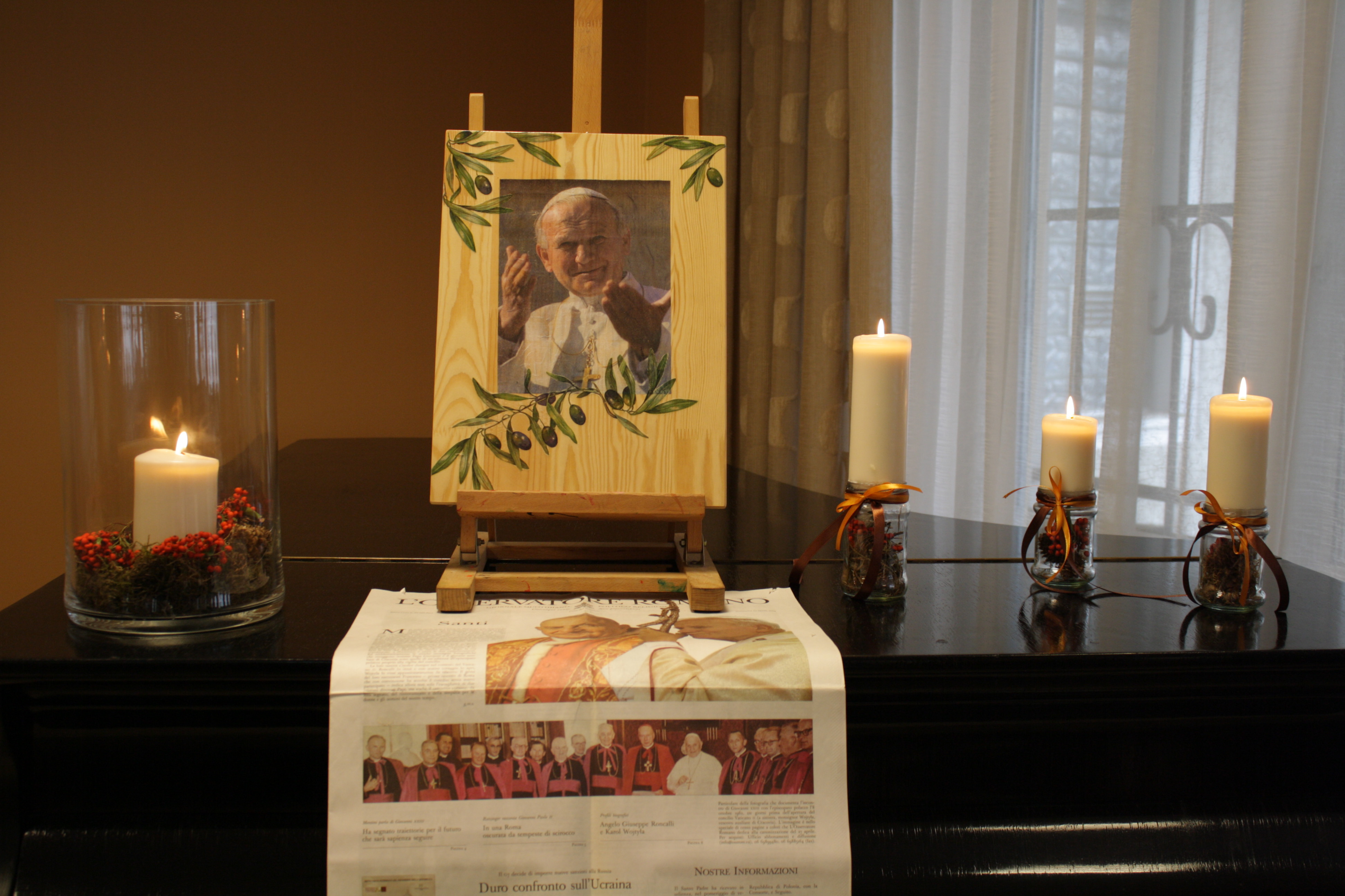Nie było w historii Polski i świata, osoby, która miałaby tak wspaniały, pozytywny wpływ, na bieg wydarzeń historycznych oraz ludzi na całym świecie. Aby uczcić pamięć o Papieżu Janie Pawle II przedstawiciele naszych mieszkańców: Pani Elżbieta Hoppe, Jadwiga Matczak i Ryszard Galczewski, zaprezentowali kilka wspomnień o naszym patronie i prawd, które nam przekazał. I choć minęło tyle lat od Jego dojścia to mieliśmy i mamy wrażenie, że wciąż jest obok nas. Święty, z którym mogliśmy spotykać się na co dzień i którego nauk słuchać, zaskarbił sobie w naszych sercach. Mieliśmy wszyscy wielkie szczęście żyć w czasie pontyfikatu Jana Pawła II. Staliśmy się jego pokoleniem, pokoleniem nazywanym w skrócie J.P. II, pokoleniem, które nie tylko, że uczyło się na żywo, tego co starał się przekazać nam Papież, ale dzięki temu przeniesie Jego nauki na następne pokolenia.