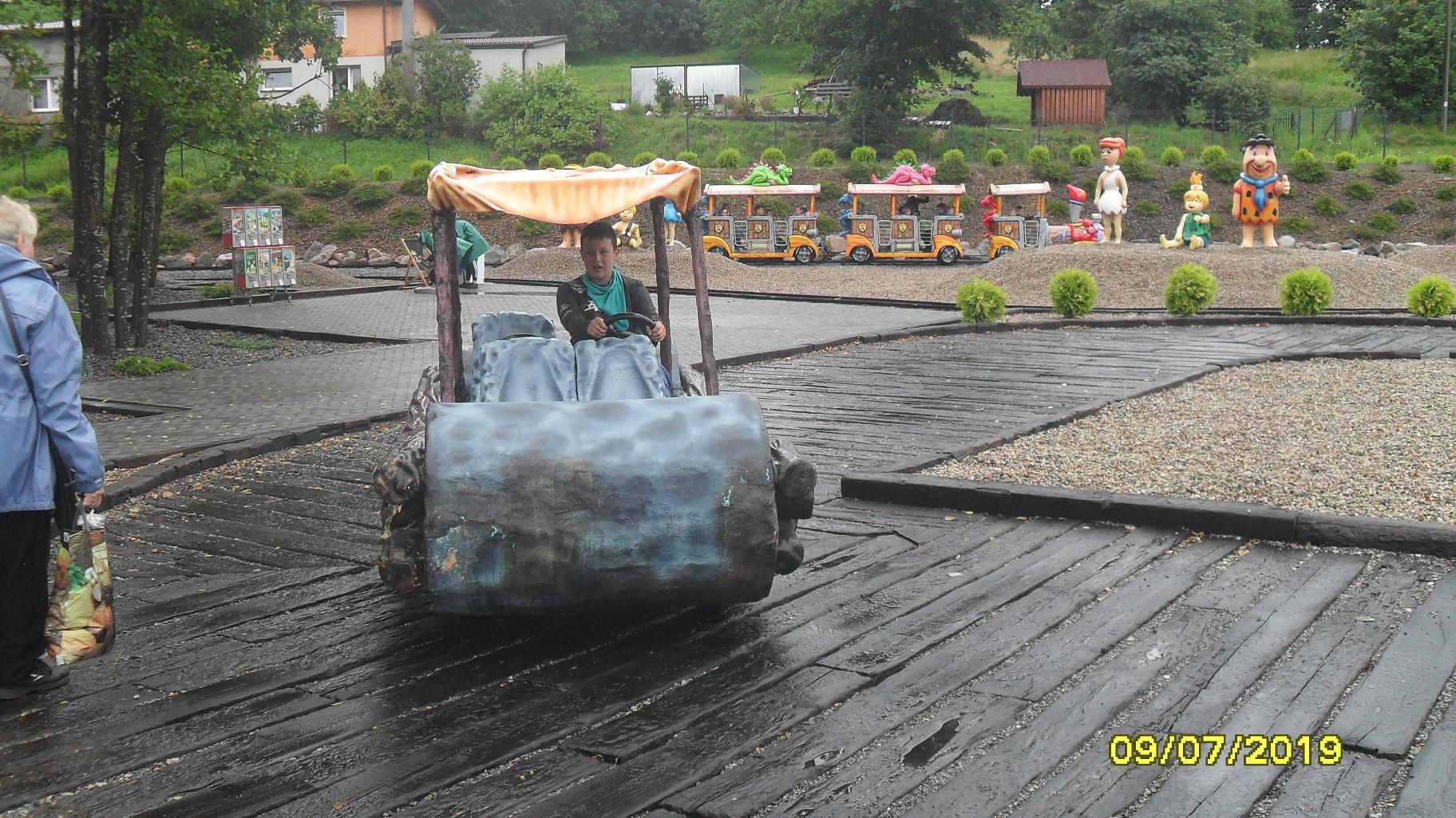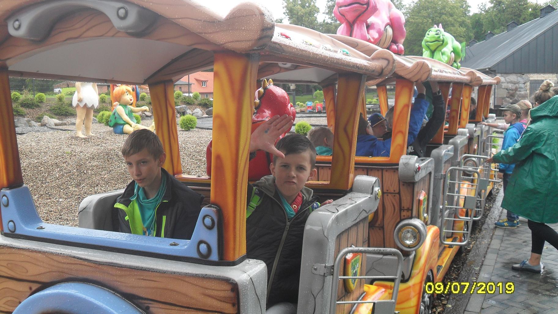 Zwiedziliśmy Park Ewolucji Edukacji i Rozrywki o rozmiarze 7 ha w otoczeniu lasu i pięknej zieleni. Głównym przesłaniem Parku jest szeroka edukacja przybliżająca najstarsze dzieje świata. Zwiedzanie rozpoczęliśmy od Ścieżki Dinozaurów. Na trasie umieszczono 30 modeli, niektóre poruszają się i wydają dźwięki. Następnie w Kinie Prehistorycznym poznawaliśmy historię powstania życia na Ziemi. Seans urozmaicał wesoły dinozaur Arnold. Niezapomniane wrażenie odnieśliśmy podczas pobytu w Batyskafie – niezapomniana podróż w czasie tunelem na dno prehistorycznego oceanu. Ultranowoczesny ekran przenosi widza do innego wymiaru. Nowe atrakcje- Stonehenge, w realizacji Sfinks i Piramidy. Dzieci chętnie korzystały z placu zabaw, atrakcją był basen z kulkami, Dino Pociąg, pojazdy Filintstonów. W ramach warsztatów dziewczynki malowały figurki dinozaurów z masy gipsowej, a chłopcy rozbijali gipsowe jaja, w których ukryte były szkielety dinozaurów. Pomalowane figurki i szkielety uczestnicy otrzymali na pamiątkę.