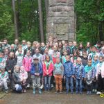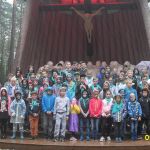 Następnie udaliśmy się do Muzeum w Piaśnicy – miejsca zbrodni hitlerowskich 10 km za Wejherowem, gdzie hitlerowcy zamordowali około 12 tys. mieszkańców Wejherowa, Gdyni, Lęborka i okolic . W latach 1939-40 przede wszystkim zamordowani zostali przedstawiciele elit- księża, nauczyciele, sędziowie, prokuratorzy , wójtowie, pacjenci Szpitala w Lęborku. Naokoło kaplicy z postaciami przedstawicielami wszystkich stanów znajdują się słupy z wypisanymi imionami i nazwiskami zamordowanych. Znaleźliśmy Leona Sichę – wójta wsi Łebno – dziadka Leona Stenki. Oprócz innych grobów znajduje się tu grób Alicji Kotowskiej przełożonej Sióstr Zmartwychwstanek w Wejherowie. Dzieci z naszej parafii złożyły zapalone znicze przy pomniku przy drodze i przy Kaplicy w lesie.
