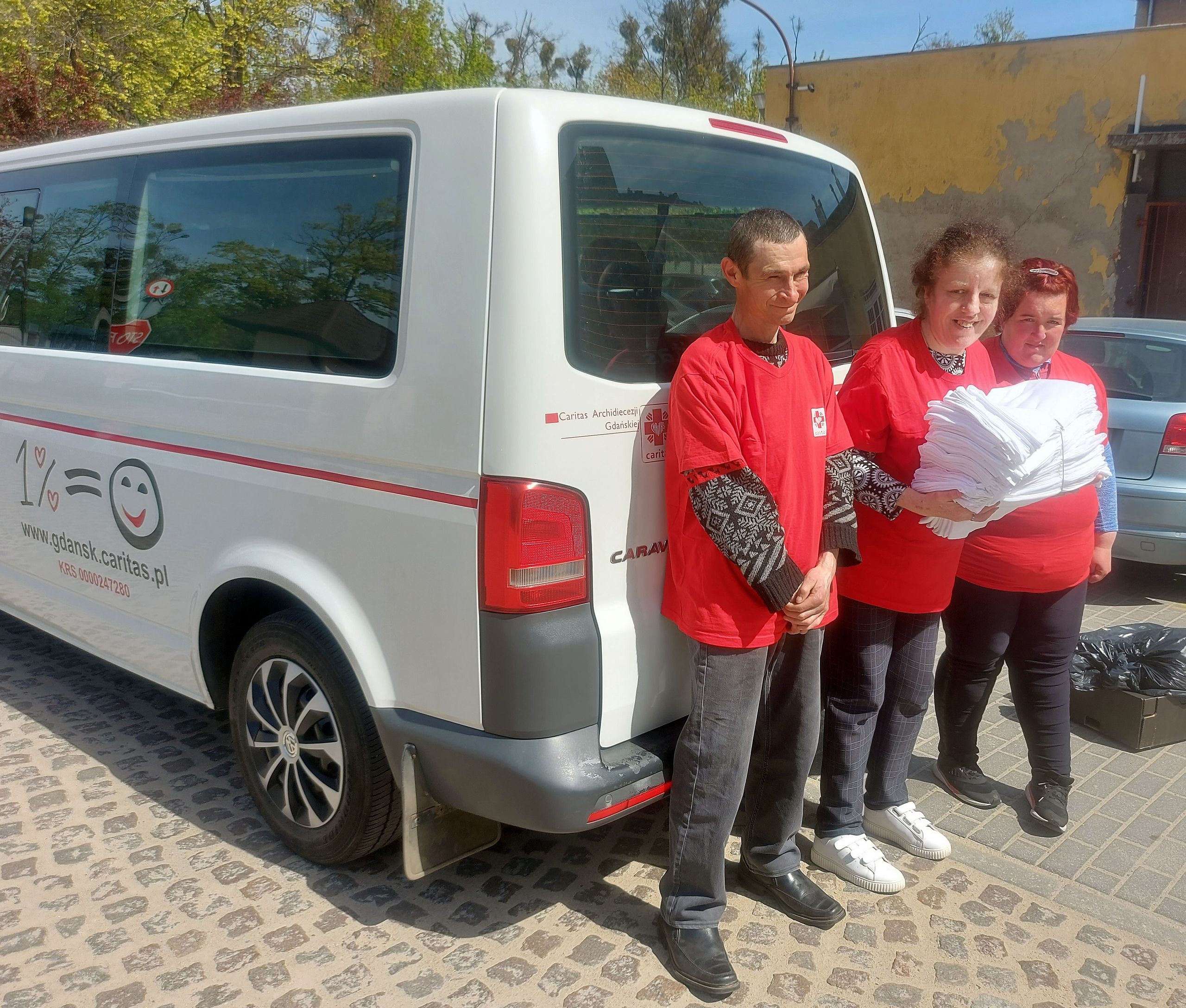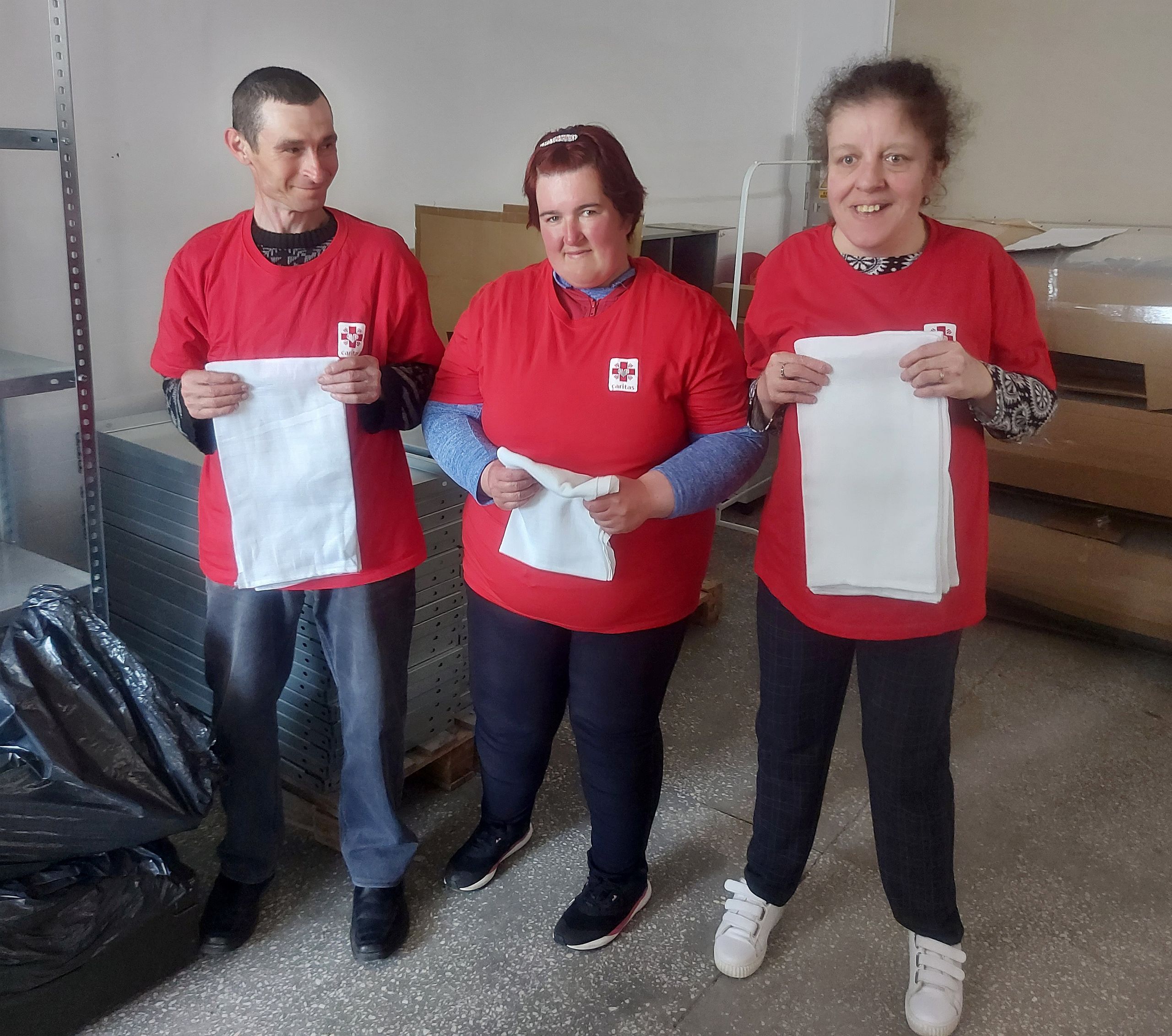 To już druga i jak na razie ostatnia partia pieluch tetrowych uszyta w Krzywym Kole na potrzeby UCK w Gdańsku. Wczoraj została dostarczona do miejsca docelowego przez naszych podopiecznych.
