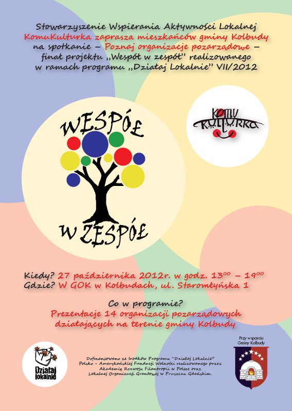 Warsztat Terapii Zajęciowej z Łapina zaprasza na Dzień Organizacji Pozarządowych Gminy Kolbudy, który odbędzie się 27 października b.r. w godzinach 13.00-18.00, w sali  GOK w Kolbudach. Podczas spotkania zaprezentujemy działalność naszego warsztatu a chętni będą mogli spróbować sił przy filcowaniu, pracy w glinie i decoupage