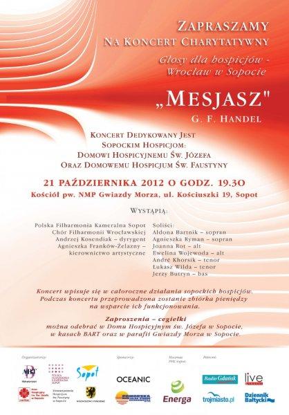 „Głosy dla hospicjów” to cykl koncertów realizowanych w ramach kampanii Pola Nadziei dedykowanych dla hospicjów w całej Polsce. Polska Filharmonia Kameralna Sopot oraz Chór Filharmonii Wrocławskiej pod batutą Andrzeja Kosendiaka zapraszają na koncert charytatywny dedykowany sopockim hospicjom: Domowi Hospicyjnemu św. Józefa oraz Domowemu Hospicjum św. Faustyny.