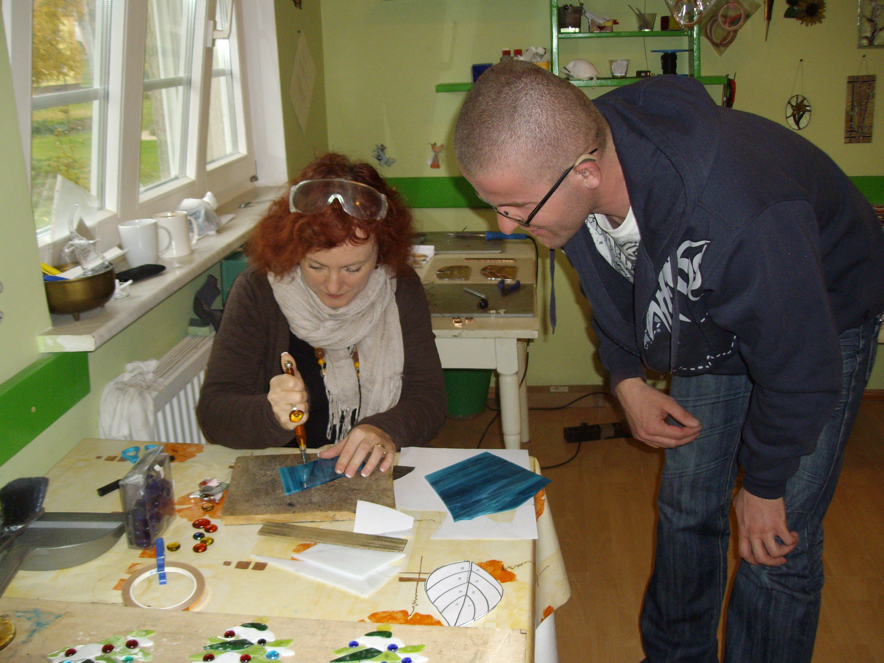 Za nami niesamowity dzień! Dzięki życzliwości pracowników i uczestników Warsztatów Terapii Zajęciowej w Łapinie mogliśmy spróbować swoich sił w rozmaitych pracowniach artystycznych. Przez cały dzień pod okiem instruktorów poznawaliśmy tajniki tworzenia batików, lepiliśmy naczynia z gliny, strugaliśmy drewniane świeczniki (i nie tylko), no i tworzyliśmy różne cuda w pracowni witrażu. Było super! Wyjazd do Łapina odbył się w ramach naszych comiesięcznych spotkań wychowawców i kierowników świetlic. Na pewno zdobyte dzisiaj umiejętności wykorzystamy wkrótce w pracy z dziećmi w naszych placówkach.
