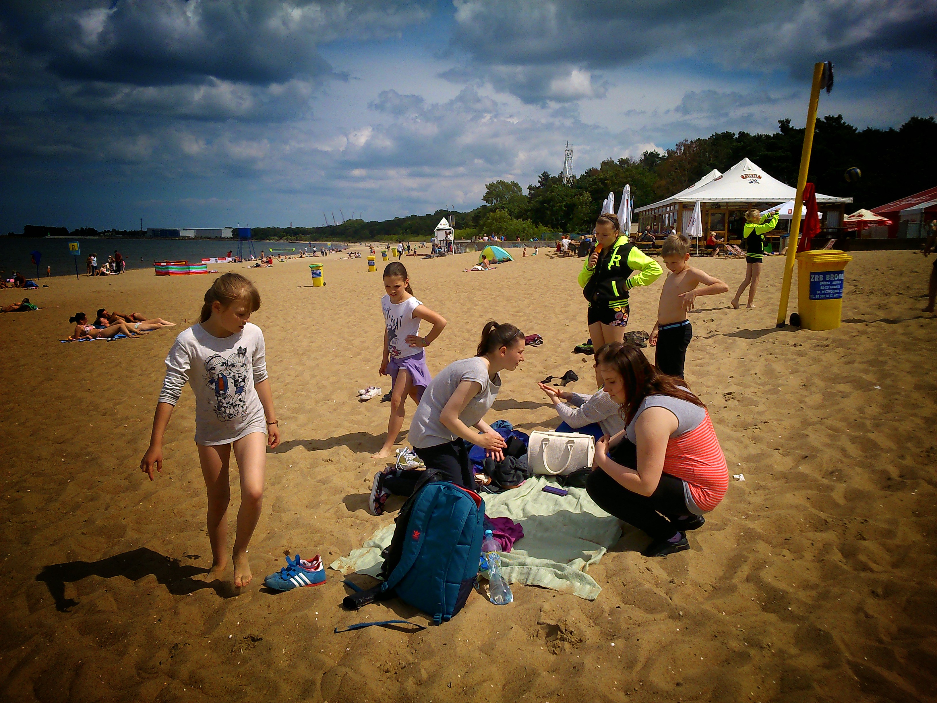 Wakacje w pełni, pogoda dopisuje, humory również! Młodzieżowa grupa „Sparta” postanowiła zatem wybrać się na plażę do Brzeźna. Planowany był plażowy relaks, zabawy sportowe na piasku, grupowe gry oraz moczenie stóp w Zatoce. Woda jednak była tak przyjemna w ten gorący dzień, że większość naszych podopiecznych postanowiła skorzystać z okazji i zanurzyć się w.. ubraniach! 🙂 brak przygotowania strojów kąpielowych nie przeszkodził młodzieży w zażyciu kąpieli morskiej, co przysporzyło wszystkim śmiechu i radości!