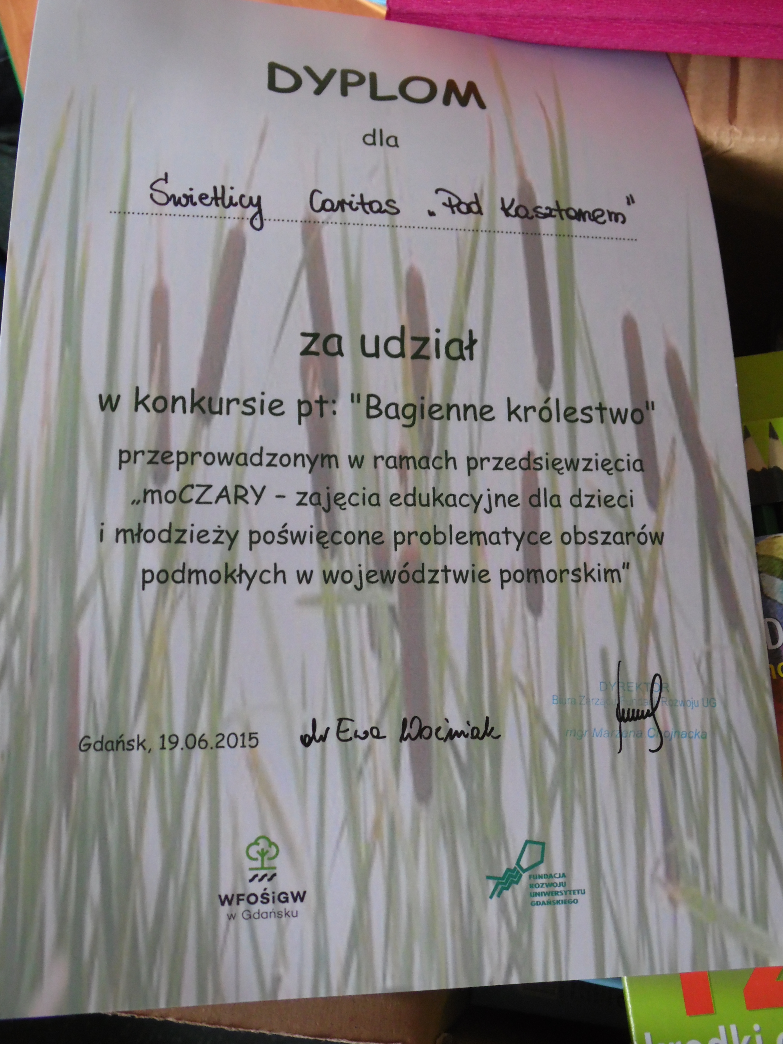 Dzisiaj odbyło się uroczyste zakończenie przedsięwzięcia „moCzary”. Były to zajęcia edukacyjne i konkurs pt.: „Bagienne królestwo”. Z dumą informujemy, że nasz Karina zdobyła III miejsce w tym konkursie. Zdobyła super nagrodę dla siebie oraz dla Świetlicy. Gratulujemy talentu i wygranej.