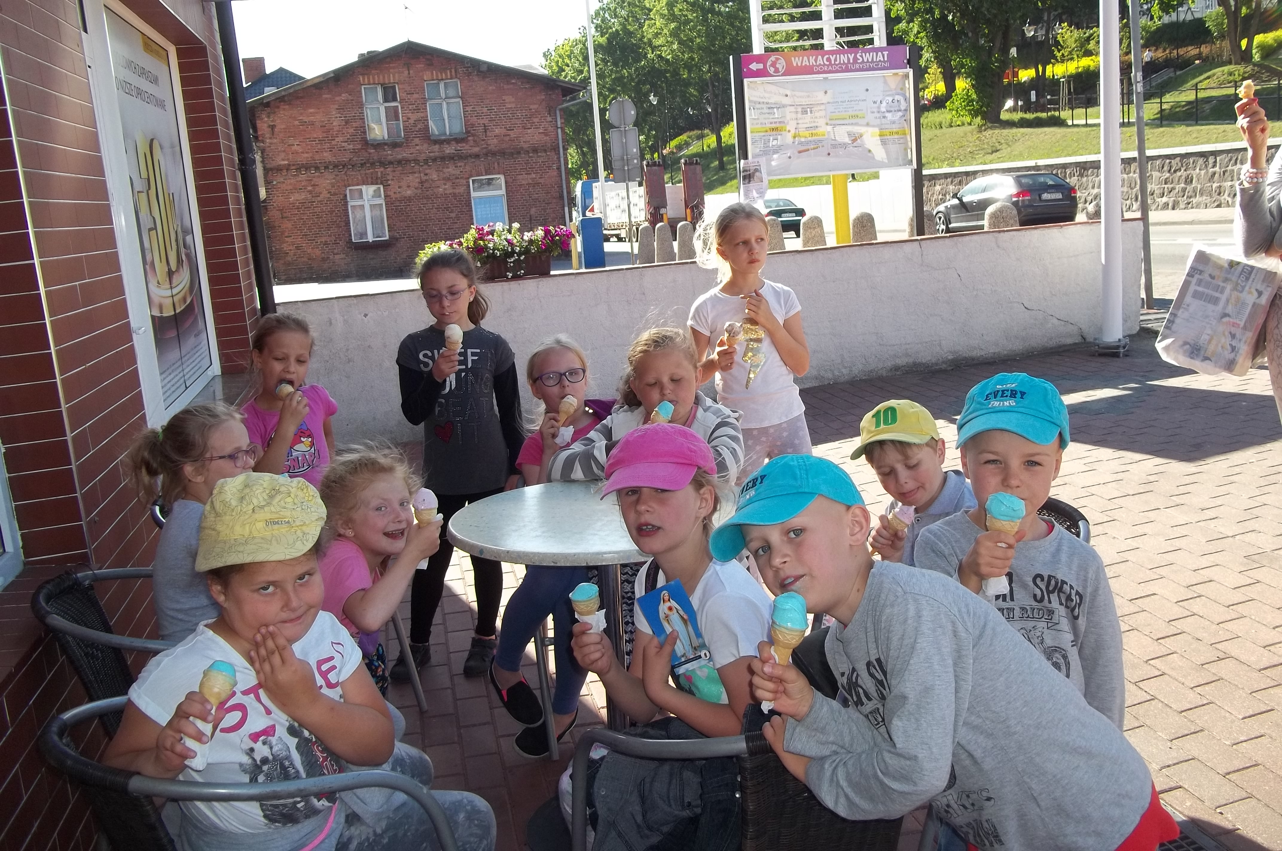 Jak tylko słońce zaczęło mocniej świecić zaczęliśmy korzystać z uroków przyrody. Wybraliśmy się nawet na pieszą wycieczkę do pobliskiego Żukowa. Szliśmy skrótem mijając po drodze zielone pola, obserwując jak rośnie posiane zboże. Mogliśmy cieszyć się otwartą przestrzenią. Nie zabrakło też dobrej zabawy na huśtawkach, zjeżdżalni oraz smurfowych lodów. Pozdrawiamy z Glincza.