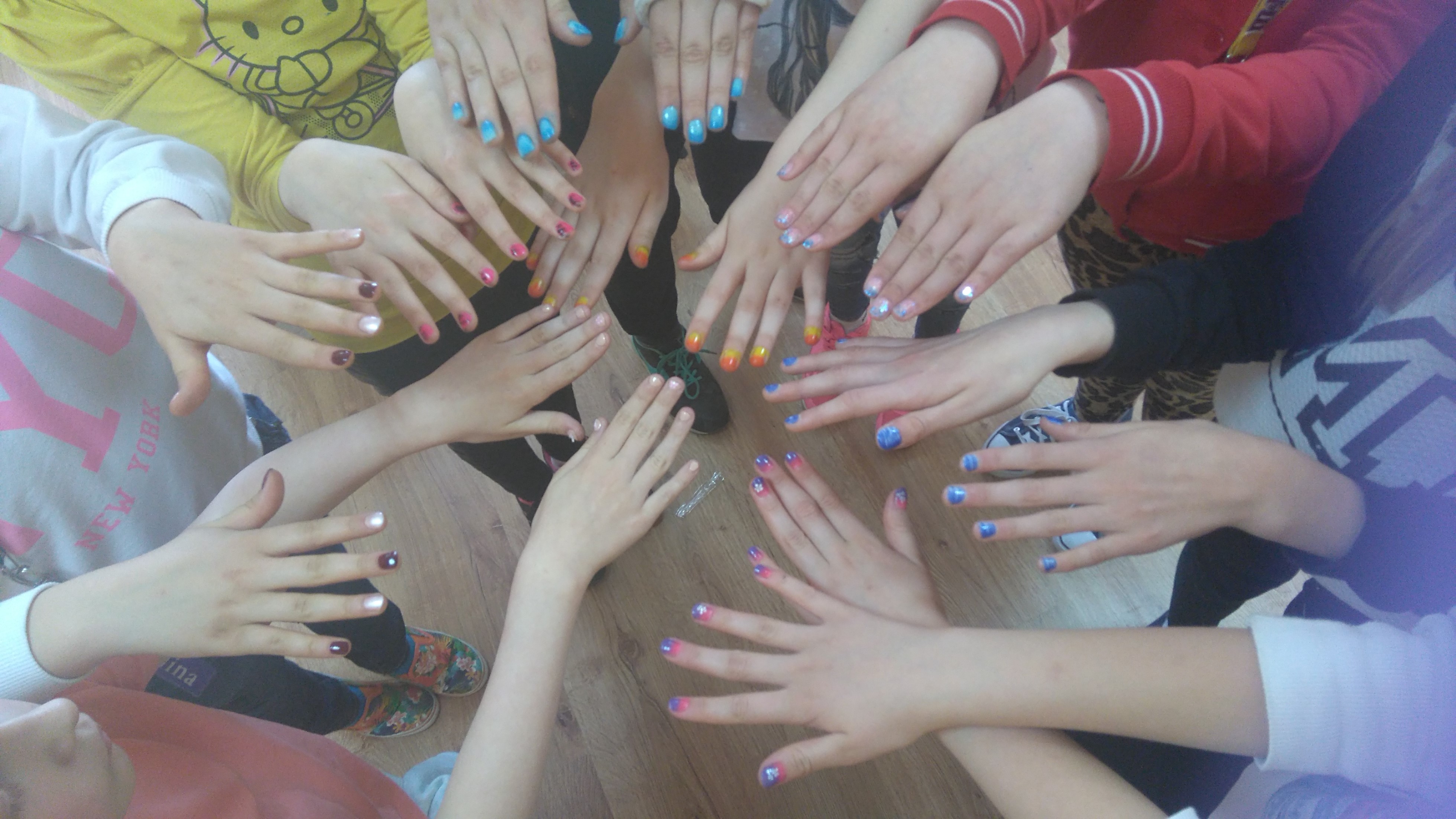 W ramach realizowanego w tym roku projektu „Kim jestem? Kim będę?” w naszej świetlicy w Skrzeszewie poznawałyśmy ostatnio pracę kosmetyczki. Chłopcy nie za bardzo byli zainteresowani, więc tym czasie piekli dla wszystkich naleśniki, a my – czyli dziewczyny – zaprosiłyśmy na zajęcia panią Olę, która według nas najlepiej zna się na paznokciach i ich malowaniu. Zadbałyśmy o higienę naszych dłoni, nauczyłyśmy się ciekawych technik malowania paznokci. Wyszłyśmy wszystkie z pięknie pomalowanymi paznokciami. Chłopcy opanowywali technikę pomywania.