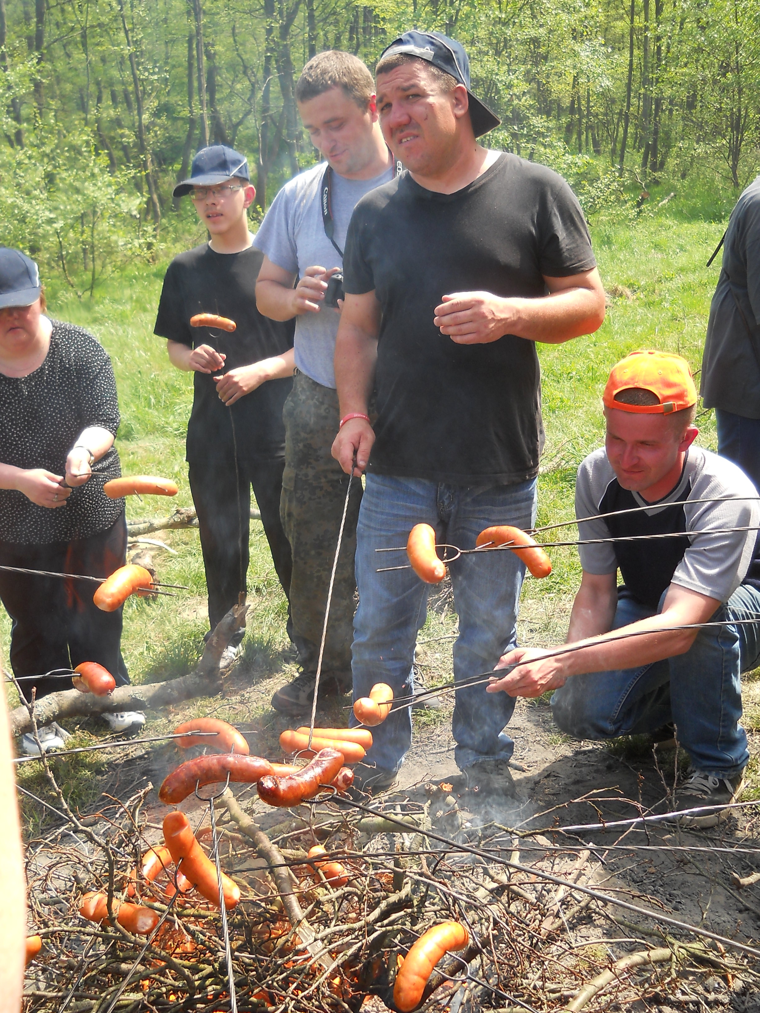 W miniony poniedziałek zorganizowaliśmy dla uczestników WTZ w Łapinie, „Dzień Historii”. Na miejsce zbiórki lekcji dojechaliśmy drezynami. Tam czekał na nas rekonstruktor  z okresu II RP. Pan Tomasz w mundurze kolejarza opisał ekwipunek, jaki mieli żołnierze z minionego okresu. Po krótkim wykładzie z historii nadszedł czas zabawy. Zostaliśmy podzieleni na grupy i otrzymaliśmy mapki  terenu pobliskiego lasu. Na mapkach mieliśmy zaznaczyć odnalezione punkty, które szukaliśmy w lesie. Było to dla nas nie lada wezwanie, ponieważ większość uczestników pierwszy raz „odczytywało” mapę. Następnie uczyliśmy się kamuflażu- to było najzabawniejsze, bo musieliśmy zakamuflować się gałęziami i podejść nie zauważonym do wyznaczonych strażników.