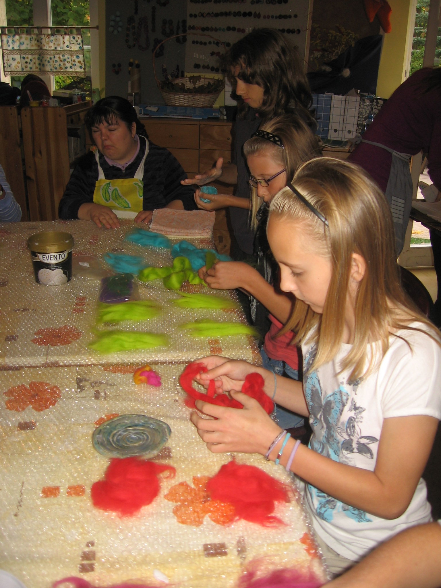 W warsztacie w Łapinie odbyły się zajęcia integracyjne dla młodzieży z II klasy Gimnazjum z Kolbud. Klasa podzieliła się na małe grupy i udała się do pracowni terapeutycznych. Tam nasi uczestnicy pełnili funkcję instruktorów i pod Ich okiem młodzież poznała technikę wyrobu kubków ceramicznych, witraży, biżuterii filcowej i podstawowe techniki obróbki drewna. Po zajęciach odbyły się dla wszystkich zajęcia taneczne przy, których było najwięcej śmiechu. Spotkanie zakończyło się poczęstunkiem. Zajęcia integracyjne miały na celu kształtować wrażliwość na nietolerancję wobec niepełnosprawnych i wzbudzanie poczucia akceptacji osób niepełnosprawnych.