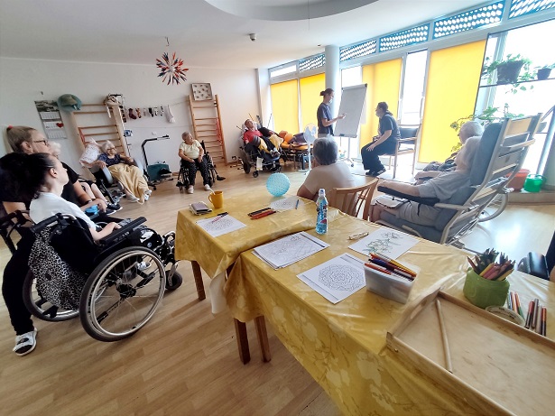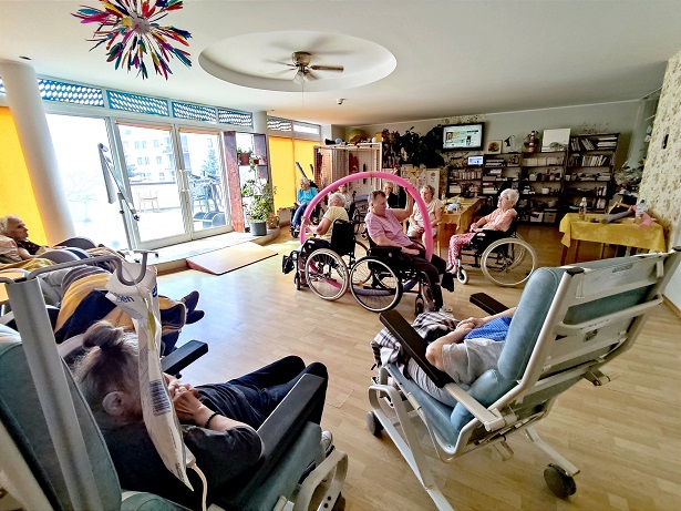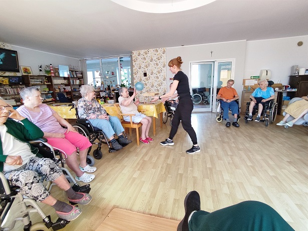 Dzień pełen atrakcji w Zakładzie Opiekuńczo- Leczniczym, m.in. rehabilitacja ruchowa, trening funkcji poznawczych, zajęcia logopedyczne, terapia zajęciowa