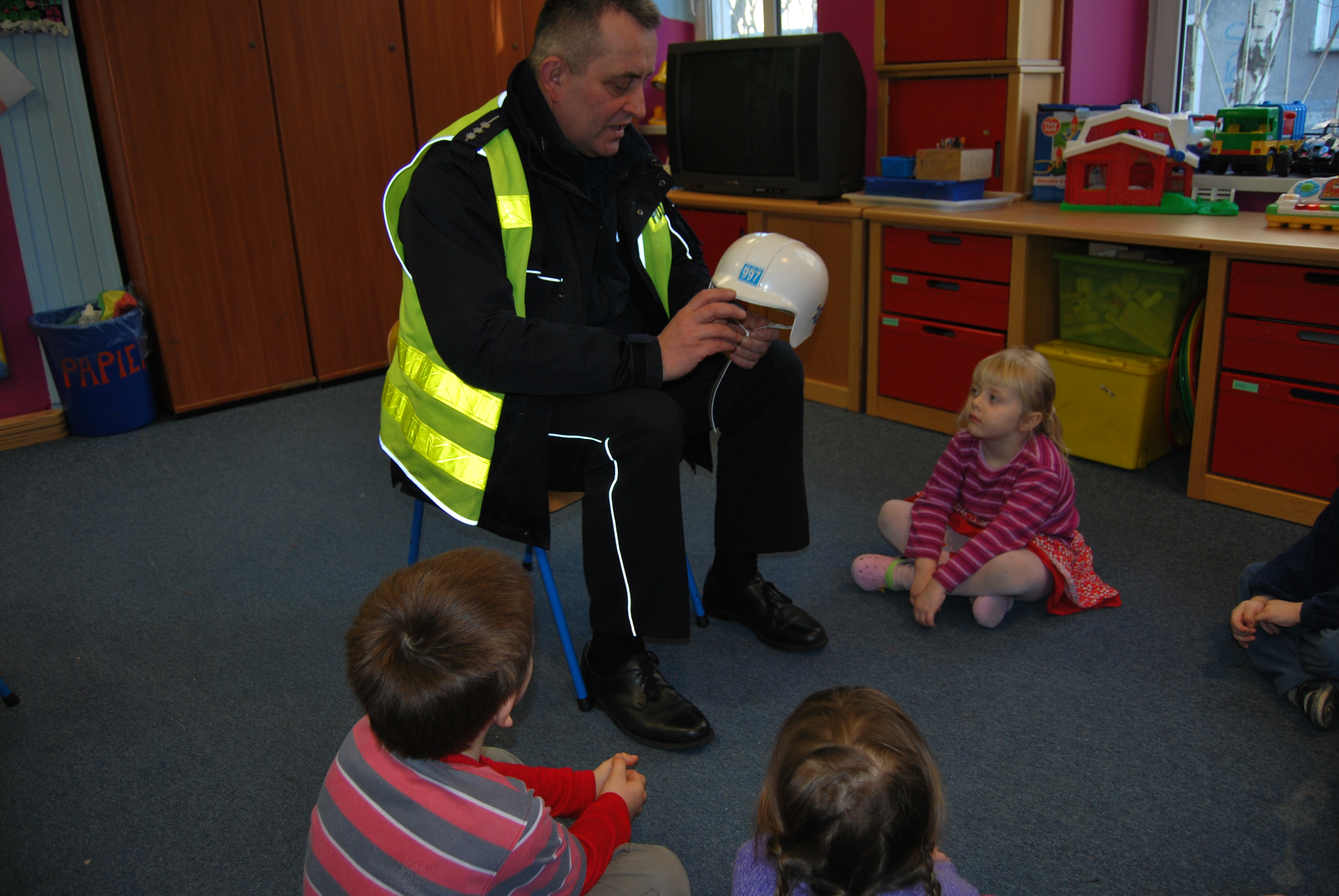 W ubiegłym tygodniu nasze maluchy uczestniczyły w zajęciach profilaktycznych pt.” Widziany na drodze”, z aspirantem Wiesławem Nózką z Wydz. Ruchu Drogowego Komendy Miejskiej Policji w Gdańsku. Pan policjant rozmawiał z dziećmi o bezpieczeństwie na drodze, przestrzegał przed nieznajomymi oraz bezpańskimi psami. Dzieci wiedzą już jak zachowywać się w sytuacjach ryzykownych i jak ich unikać, zajęcia były dla nich bardzo pouczające, a na koniec zostały obdarowane pamiątkowymi niespodziankami.