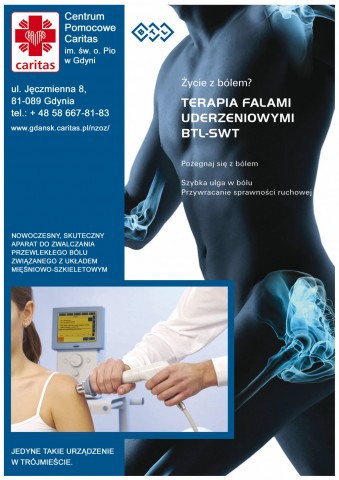 Gdańska Caritas zakupiła bardzo nowoczesne urządzenie do walki z bólem. Urządzenie to znajduje się w Centrum Pomocowym Caritas im. Ojca Pio w Gdyni, ul. Jęczmienna 8.