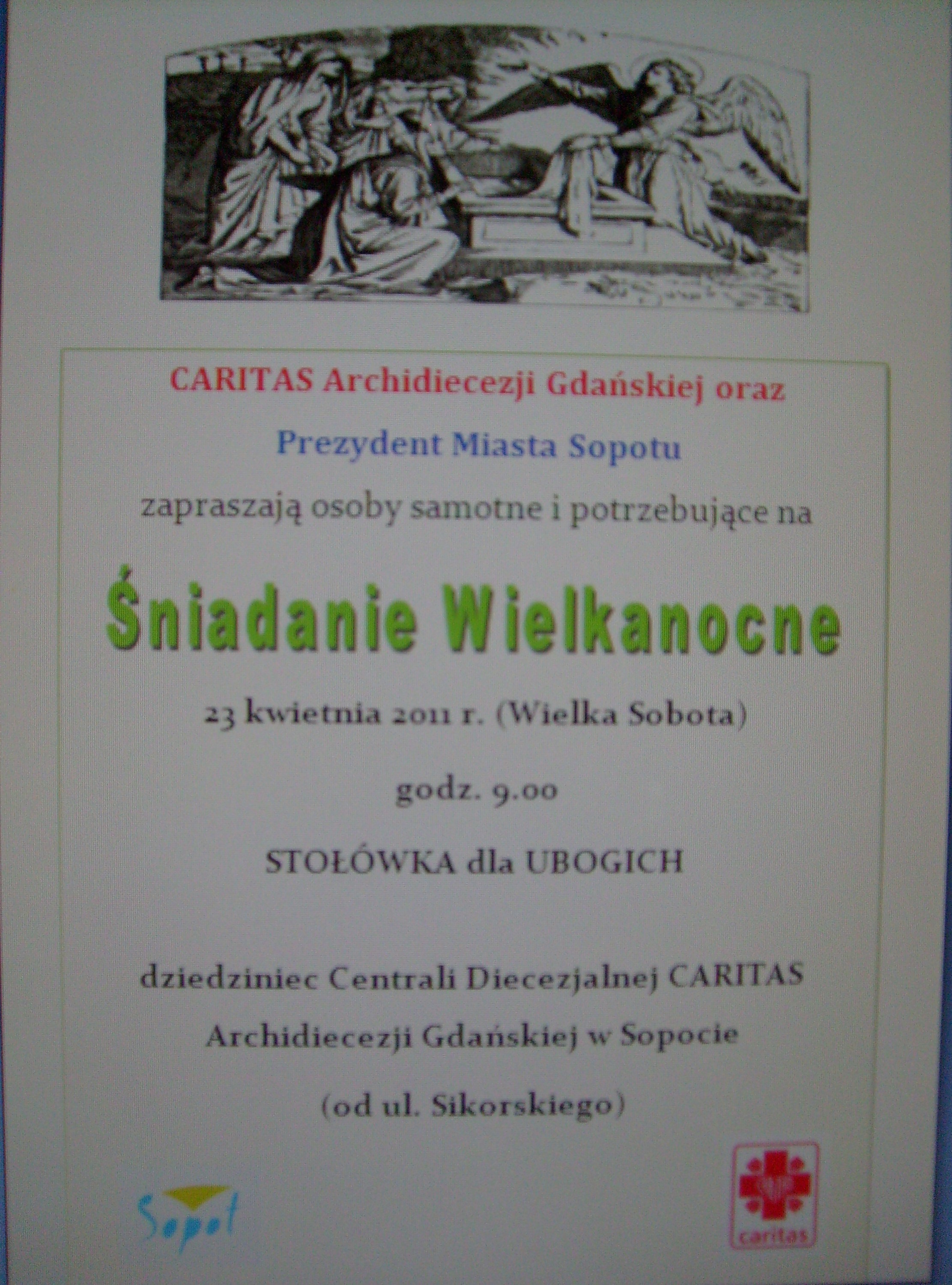 W Wielką Sobotę 23 kwietnia o godz. 9.00 zapraszamy na dziedziniec Centrali Diecezjalnej CARITAS Archidiecezji Gdańskiej w Sopocie (wejście od ul. Sikorskiego).