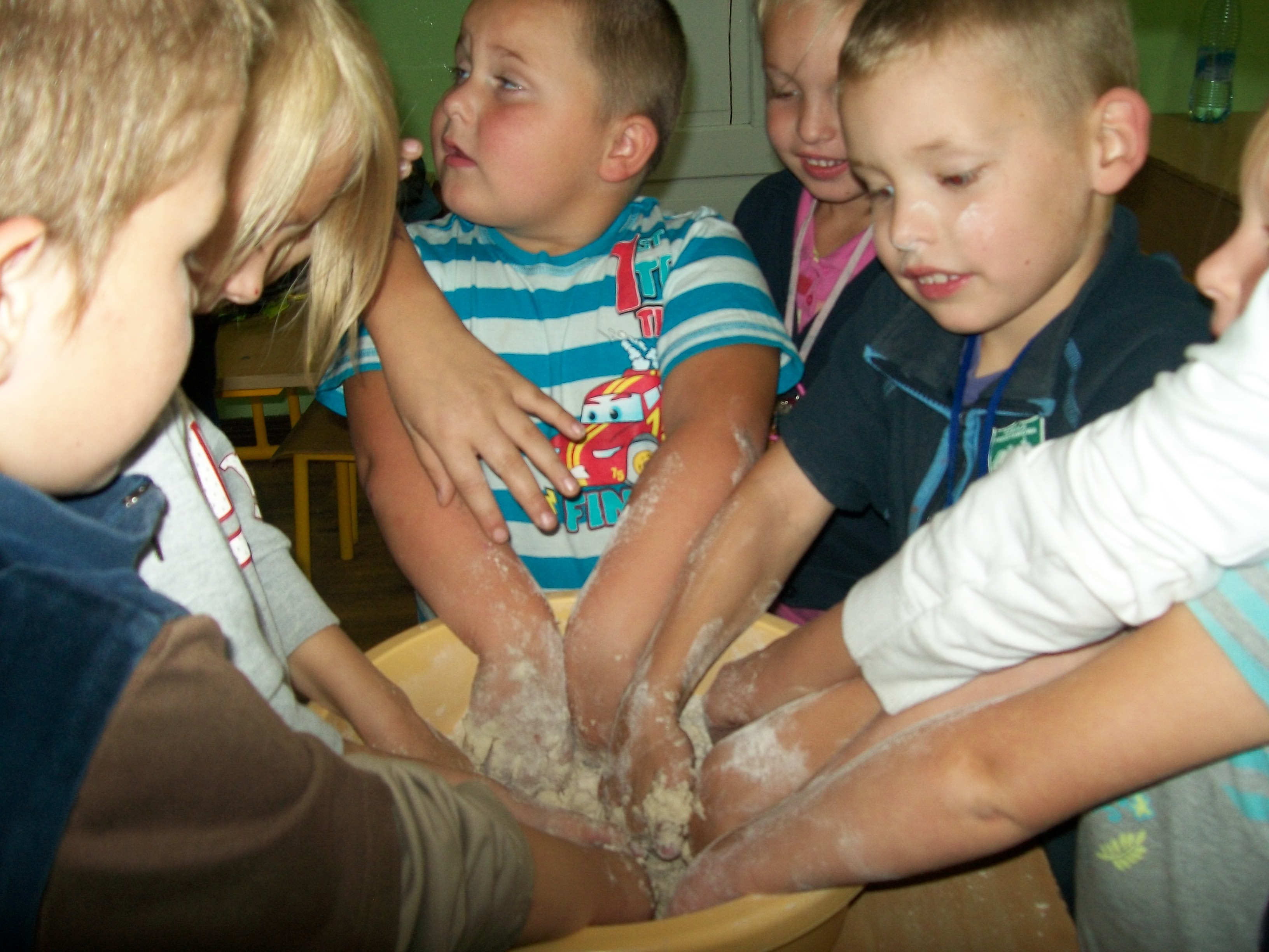 Mamy za sobą wrześniowe powitania, wzajemne poznawanie się, witanie nowych kolegów i koleżanek. Przypomnieliśmy sobie jak bezpiecznie poruszać się na drogach, jak przestrzegać przepisów drogowych. Uczyliśmy się robić zakupy, dowiedzieliśmy się na co zwracać uwagę przy wyborze produktów. No i do tego były spacery, zabawy na świeżym powietrzu. Tworzyliśmy także nasze małe dzieła sztuki, np. z masy solnej, którą sami przygotowaliśmy. Zrobiliśmy owoce i warzywa, a wśród nich były kosmiczne w kolorze niebieskim. Prezentujemy je na zdjęciach.