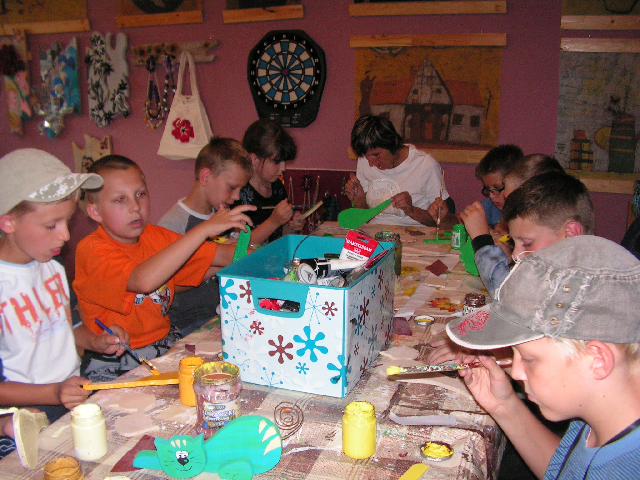 Wczoraj tj 23 sierpnia 2010 życie warsztatowe toczyło się swoim spokojnym, poukładanym rytmem. Nic nie zapowiadało „ rewolucji”. Aż tu nagle ok. godz 12.00 dzwoni telefon i dawno niesłyszany głos Ks. Krzysztofa Sagana oznajmia, że za chwilę wpadnie do nas z grupą „ swoich” dzieci. I faktycznie upłynęły dosłownie minuty ,a pod budynek WTZ podjechał autobus oraz bus Ks. Krzysztofa. Oba pojazdy wypełnione były po brzegi dziećmi w wieku mocno zróżnicowanym. Zarówno dla pracowników , jak i podopiecznych ta spontaniczna sytuacja była nie lada wyzwaniem. Każdy z nas chciał bardzo dobrze wypaść w roli gospodarza i godnie podjąć niecodziennych gości. Dzisiaj już wiemy, że wszyscy spisali się na medal i udało się !! Dowodem na to, że było fajnie było niezadowolenie dzieci, gdy musiały wracać do domów. Każde z nich prosiło o „ jeszcze kilka minut”. My też cieszyliśmy się z przedłużanej wizyty, gdyż mogliśmy wykorzystać ten czas na rozmowę z Ks. Krzysztofem za którym wszyscy bardzo się stęsknili. A zatem zapraszamy częściej do takich zrywów……….