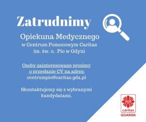 CPC im. św. O. Pio ogłasza nabór na stanowisko: Opiekunka/Opiekun Medyczny w zakładzie opiekuńczo – leczniczym