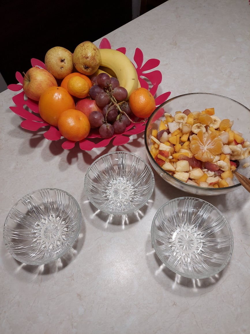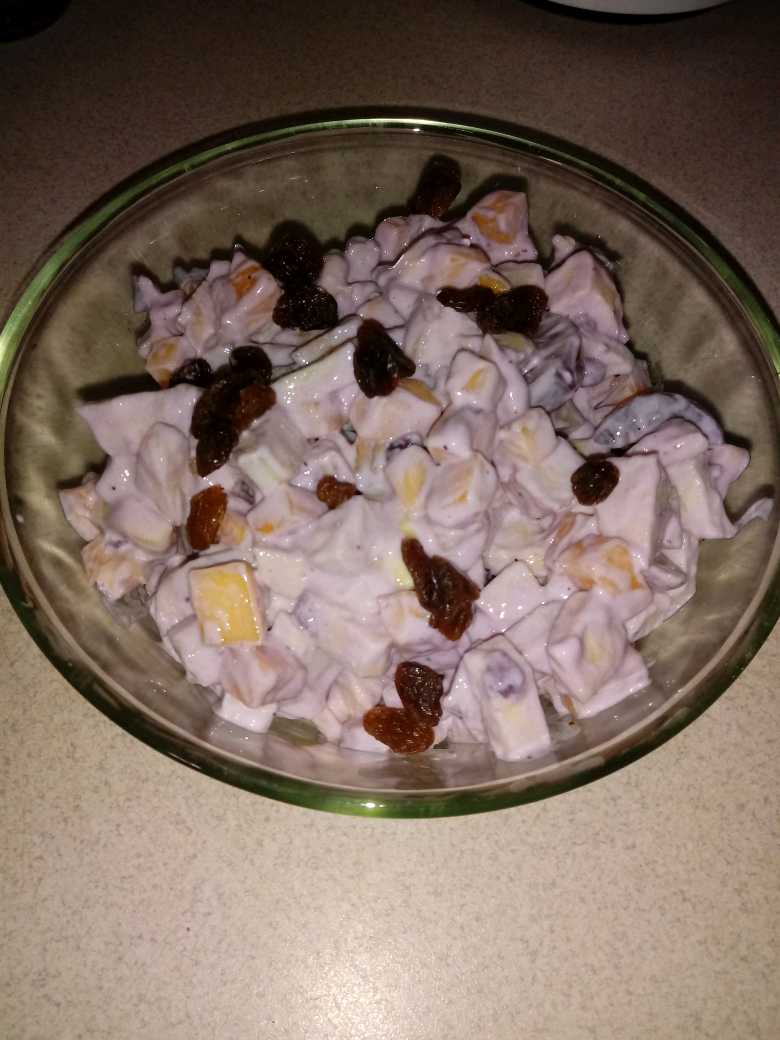 W ubiegłym tygodniu dzieci ze świetlicy w Łapinie robiły sałatkę owocową według własnej inwencji. Otrzymały  do domów zestawy 6 rodzajów owoców, jogurt i rodzynki i przystąpiły do działania. Oto efekty 🙂
