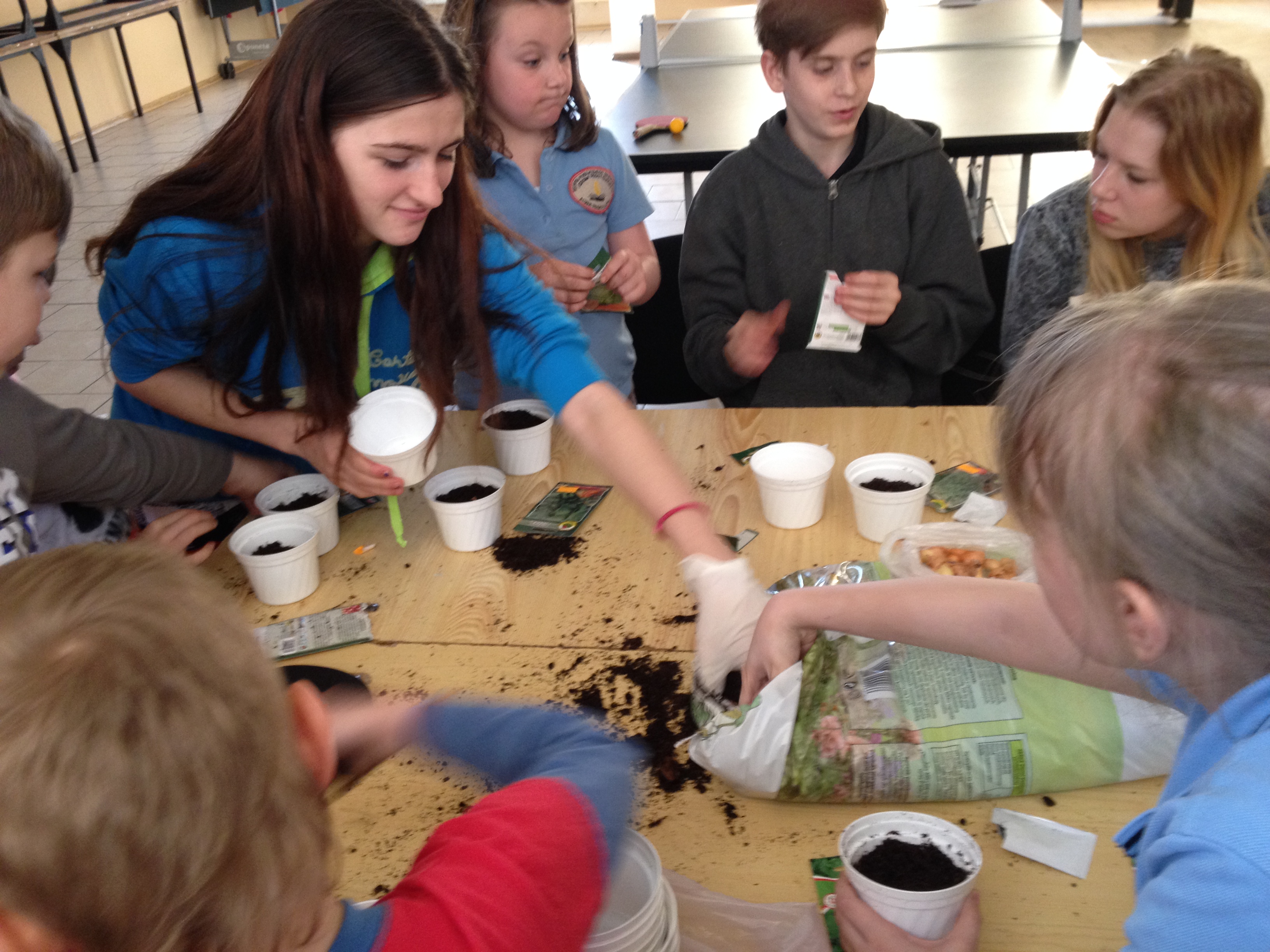 Dnia 21.04.2016 wychowankowie świetlicy Caritas z Leźna zakładali zielony ogródek. najpierw posilili się samodzielnie przygotowanym posiłkiem: zapiekane ziemniaki z mięsem i surówka. Następnie przygotowali doniczki z ziemią i zasiali między innymi: rzodkiewkę, bazylię, koperek, szczypiorek, oregano itp. Na zakończenie po ciężkiej pracy, nagrodzeni zostali lodami.