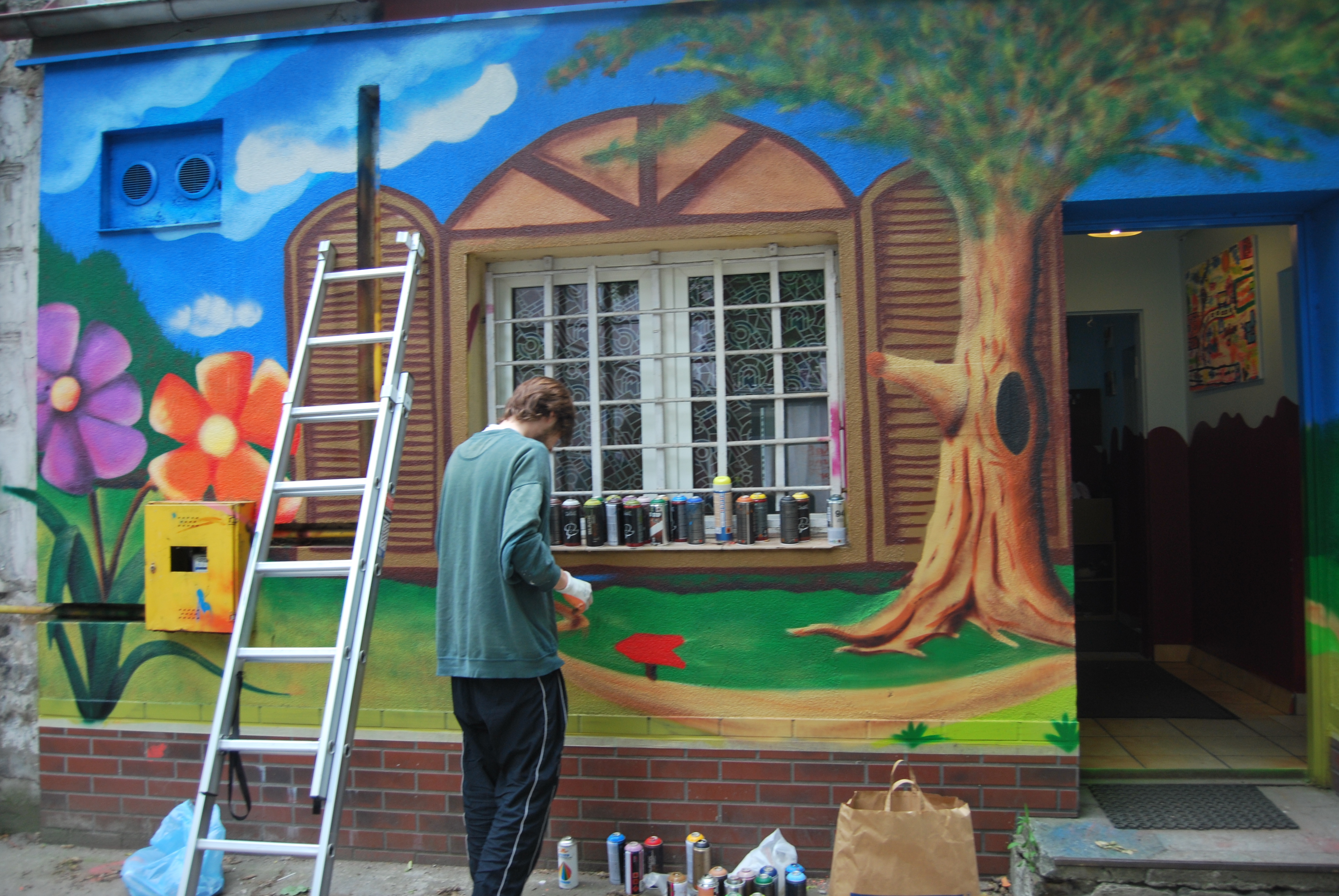 Od kilku dni budynek naszego Centrum przechodzi wielką metamorfozę. Zaprzyjaźniony młody artysta ozdabia ściany zewnętrzne kolorowym bajkowym graffitti. Oto efekty jego pracy: