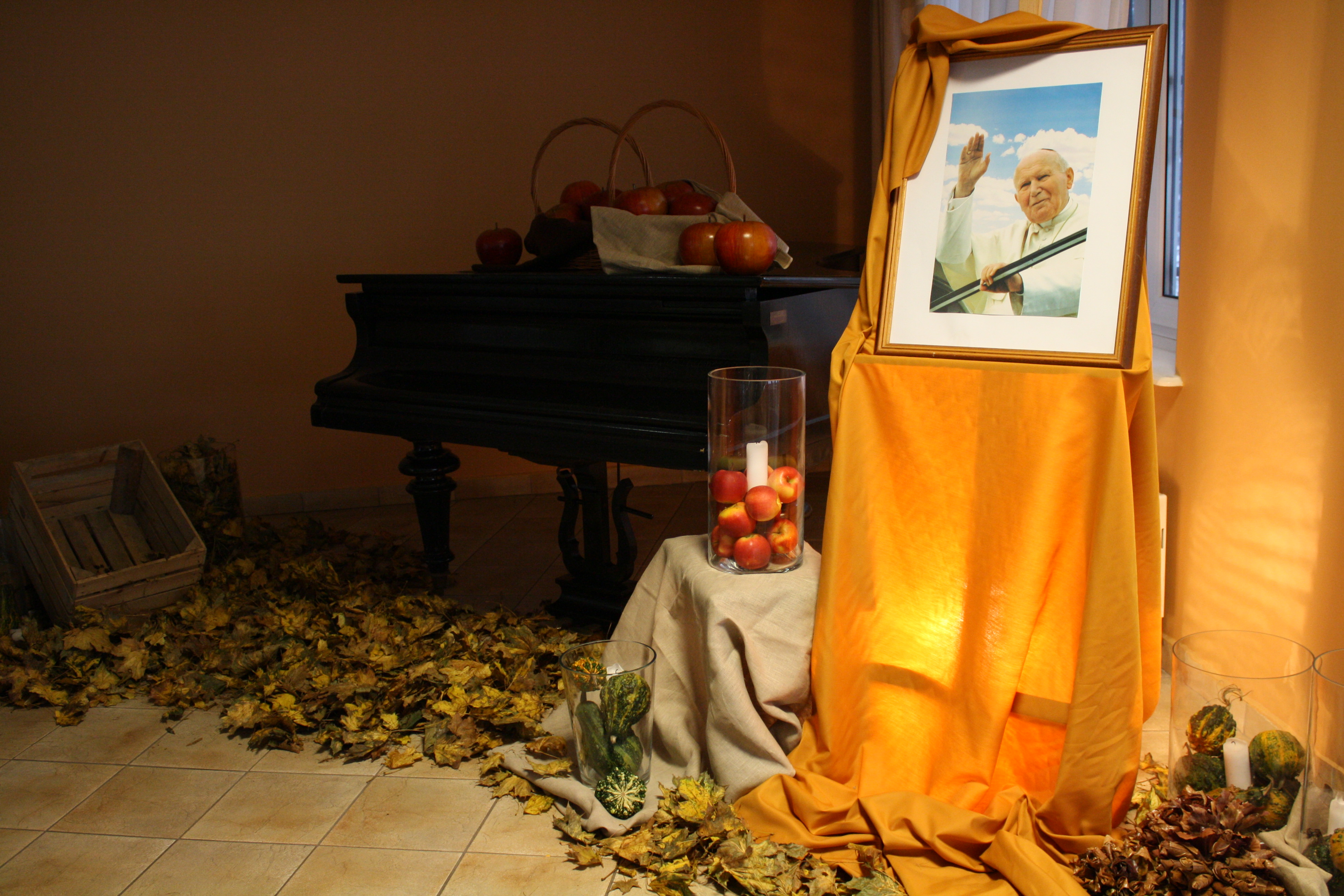Jan Paweł II powiedział w Fatimie: „Orędzie fatimskie jest ściśle związane z przeznaczeniem Kościoła i ludzkości. Jest orędziem wieku, zawsze istotnym, jak Ewangelia (…). Jest otwarte (…). Trzeba je podejmować wciąż na nowo, (…) zgodnie ze znakami czasu”. W tym duchu mszy świętej przewodniczył ks. Janusz Steć- Dyrektor Archidiecezji Gdańskiej Centrum Pomocowego Caritas, podczas odpustu Świętego Jana Pawła II na Fromborskiej. Rozpoznawanie „znaków czasu” jest dziełem naszej wiary kierowanej przez Ducha Świętego. Wyrażają przemiany dokonujące się w życiu społecznym, gospodarczym, politycznym czy kulturalnym, które nie stanowią odosobnionych faktów, lecz tworzą zjawiska rozciągające się na cały cykl życia, wyrażają potrzeby i aspiracje współczesnego człowieka. Należy tu podkreślić także pełną godność, każdej istoty ludzkiej; troskę o pokój i przekonanie, że jest on niepodzielny; przekonanie o potrzebie międzyludzkiej solidarności troskę ekologiczną wynikającą z rosnącej świadomości ograniczoności dostępnych zasobów naturalnych i potrzeby respektowania integralności i rytmów natury; zaangażowania polityków, ekonomistów, związkowców, ludzi nauki, pracowników instytucji międzynarodowych i innych w likwidację istniejącego w świecie zła, aby stworzyć ludzkości warunki godnego życia. Te znaki czasu wpisują się w życie naszego domu szczególnie mocno. A szczególnie podkreślili to mieszkańcy z „Kwartetu Amatorskiego” w przedstawieniu pt. „Miłość jesieni życia” pod bacznym okiem Pani Anny Brych, gdzie udowadniają, że starość to nie tylko samotność i pustka, brak godności, a może być równie piękna jak młodość. Bo pory życia są jak pory roku. Każda ma swoje uroki. A w tym przemijaniu jest wartość ogromna, bo oczy nasze kieruje na dobro, które było i które się pamięta. Wspominamy ludzi, których już nie ma lub istnieją w naszych sercach i na fotografiach. A wspomnienia są jak wiosna, która rozwesela duszę i ….jest tęsknotą tego co już nie powróci. Choć mąci ład w sercu, które już wolniej bije, wciąż jeszcze pamięta szaleńcze tętno młodości. Ta pielęgnowana nigdy nie mija. Więc jeśli w sercu pojawia się myśl o przemijaniu, niech będzie to chwila radosna i dostojna jak jesień, która jest etapem życia, pełnej ciepłych i mądrych barw, ukrytych w liściach doświadczeń, bo: