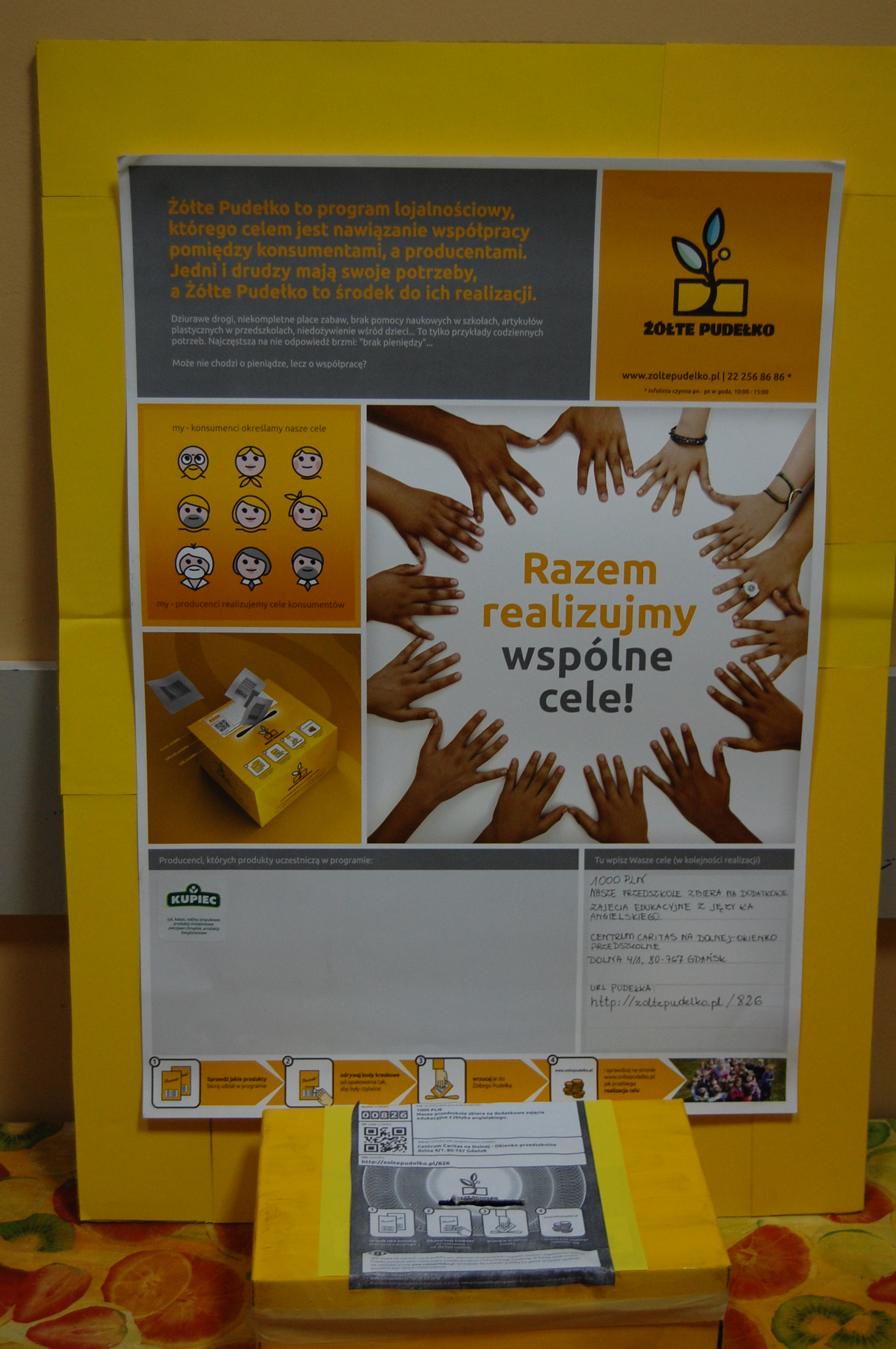 Akcja ta polega na zbieraniu kodów kreskowych firmy „Kupiec”. Jeśli zgromadzimy jak największą liczbe kodów kreskowych „Program Żółte pudełko” zamieni je na pieniążki. Naszym celem w programie jest uzbieranie wystarczającej ilości kodów na język angielski. Liczymy na pomoc w zbieraniu kodów kreskowych:)