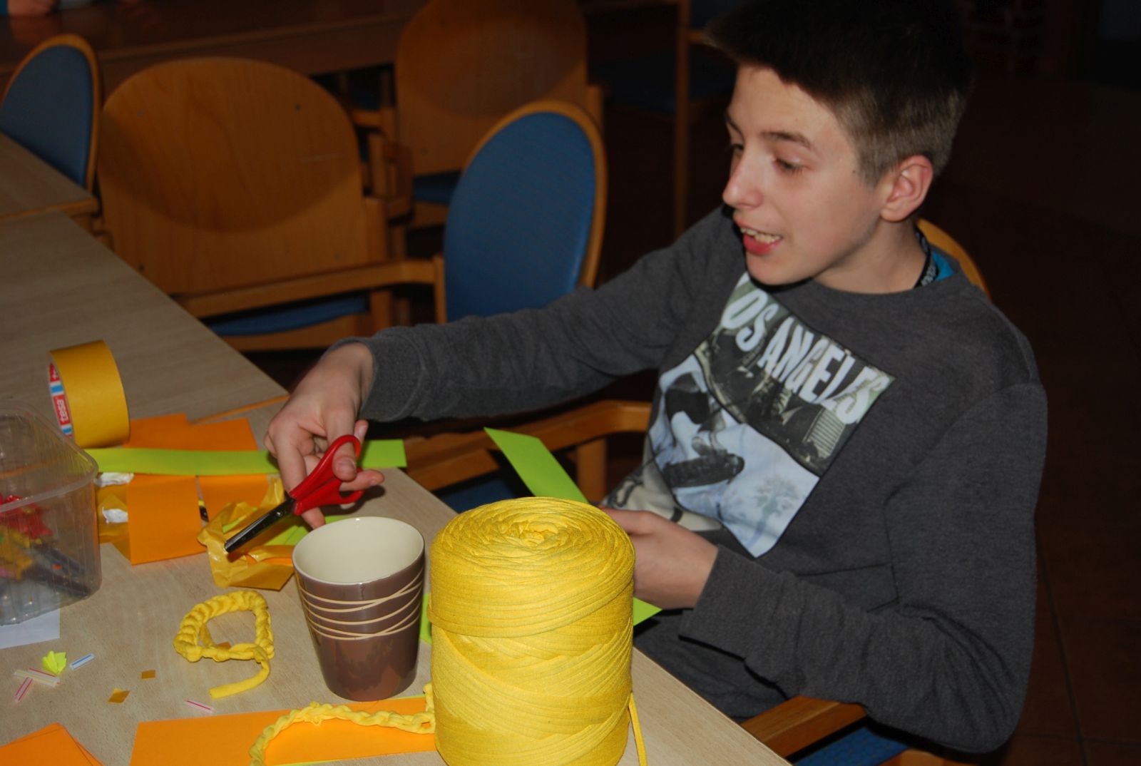 Wczoraj wychowankowie Jesionowej w ramach pamięci i wsparcia osób przebywających w Hospicjum obchodziły „Żólty Dzień”. Maluchy z grupy „Radosne Krasnale” dowiedziały się na czym polega akcja Pola Nadziei na Pomorzu i czego symbolem jest żonkil. Następnie w ramach zajęć plastycznych wykonały żonkile, którymi przyozdobiły opaski na głowę. W starszych grupach obchody Żółtego Dnia wyglądały podobnie. Zarówno dzieci jak i wychowawcy byli ubrani na żółto, a placówka przyozdobiona żółtymi elementami.
