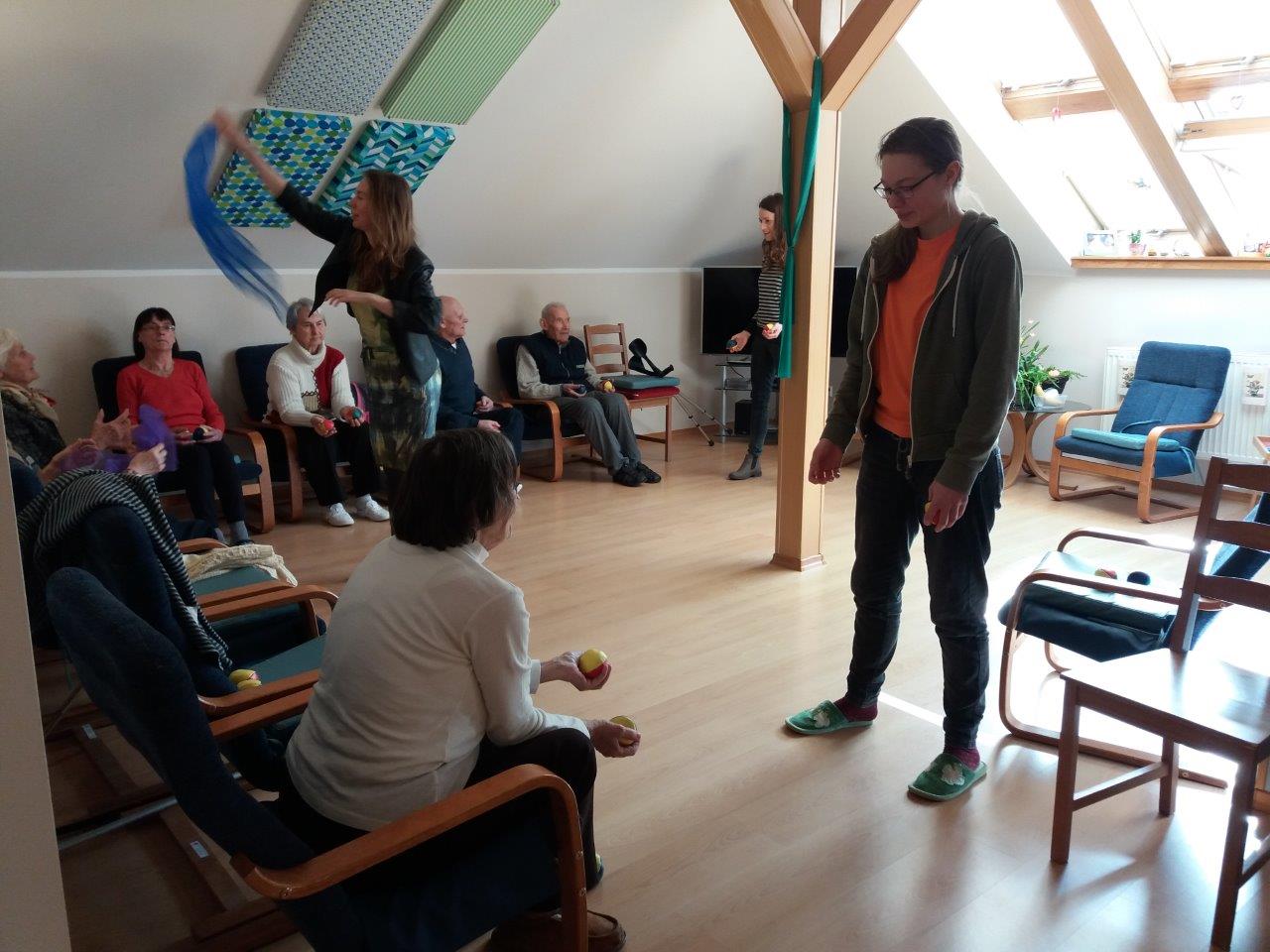 Nasi Pacjenci z zaangażowaniem i z ogromną radością uczestniczą w kolejnych zajęciach z żonglowania.