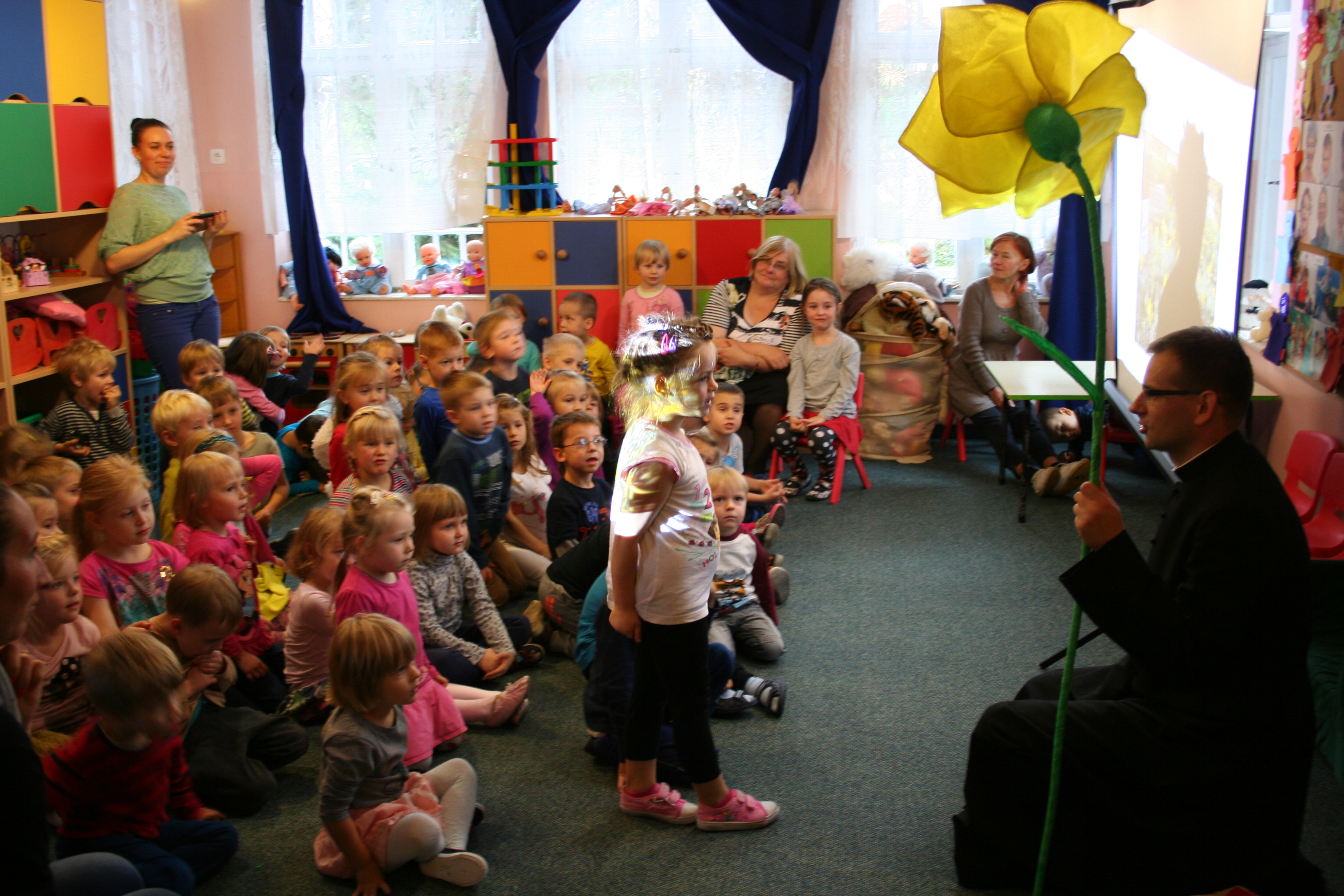 Dzisiaj Przedszkole nr 1 z Sopotu w swoje progi zaprosiło gości z Hospicjum. Podczas tej wizyty miało miejsce sadzenie żonkili. Niestety aura na zewnątrz nie jest ostatnio zbyt łaskawa, więc wszystko odbyło się jedynie symbolicznie. Kolorowa prezentacja zdjęć pomogła przybliżyć dzieciom idee Pól Nadziei – radosnych żółtych pól żonkili. Następnie ksiądz Tomasz podczas ożywionej dyskusji, ustalił wraz z przedszkolakami co to są żonkile, gdzie rosną i jak się je powinno sadzić. Każdy Maluch otrzymał cebulkę żonkila, której nadał imię i „zasadził” do grupowej grządki. W zamian otrzymał żółty balonik – symbol zakwitającego kwiatka. Wiosna zawitała do przedszkola w ten jesienny dzień. Kiedy tylko pogoda dopisze dzieci posadzą cebulki przed budynkiem, a my czekamy na foto relację z tego wydarzenia 🙂